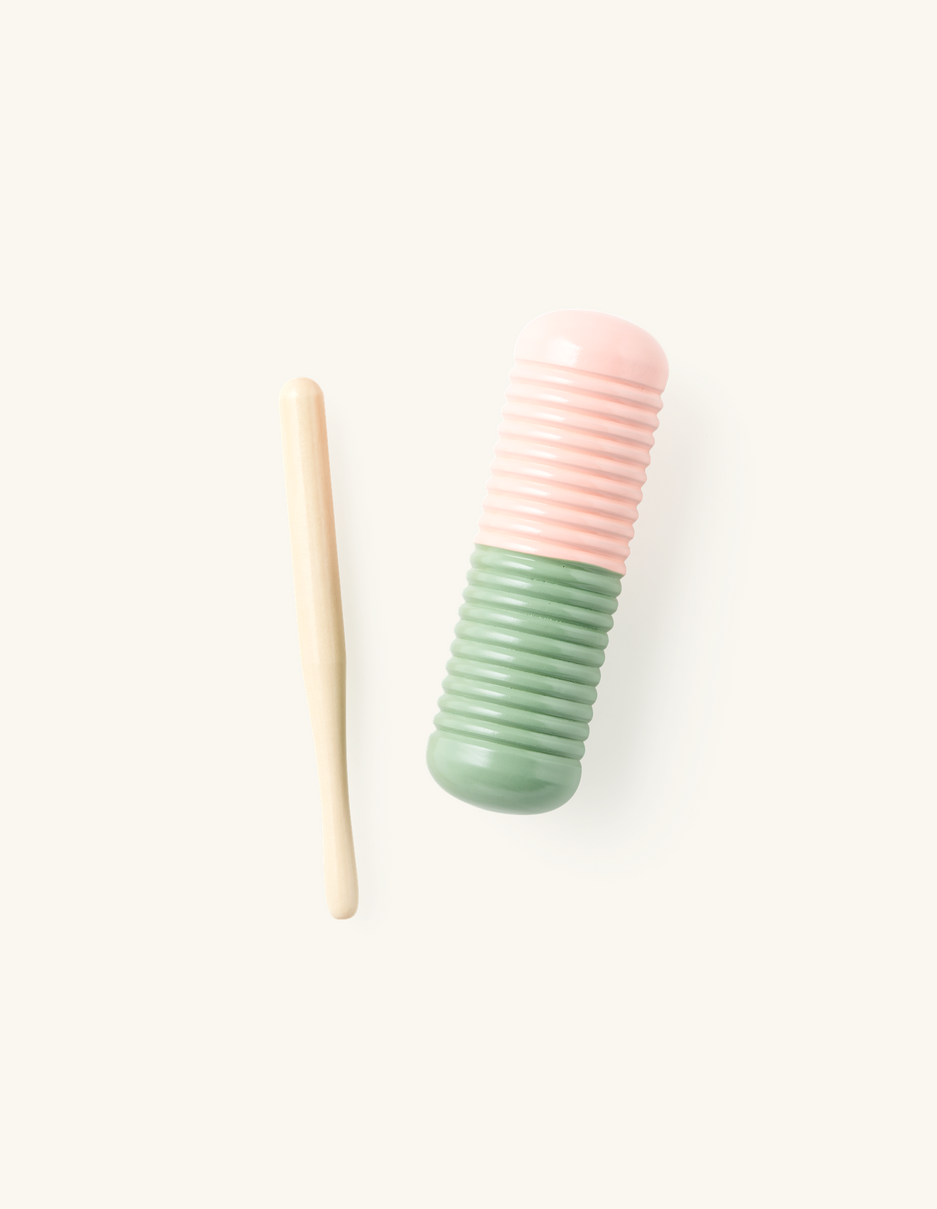 The sisters' toy guiro is made of FSC®-certified schima superba and measures 13.5 x 4 cm.