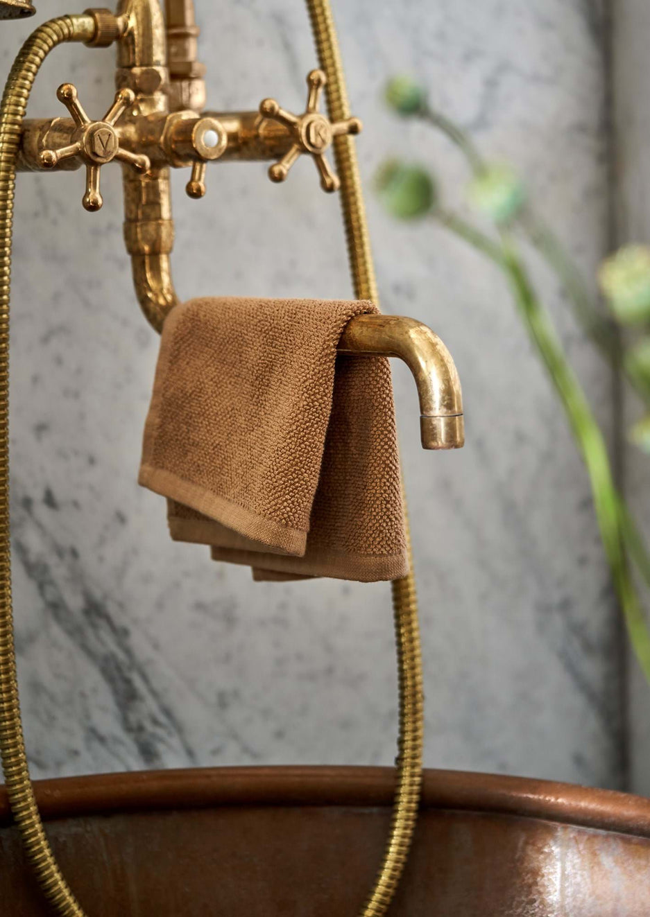 Clara decorates her bathroom with a scented candle, a beautiful plant and her new, soft towels. "Soft materials create a feeling of everyday luxury," she says.