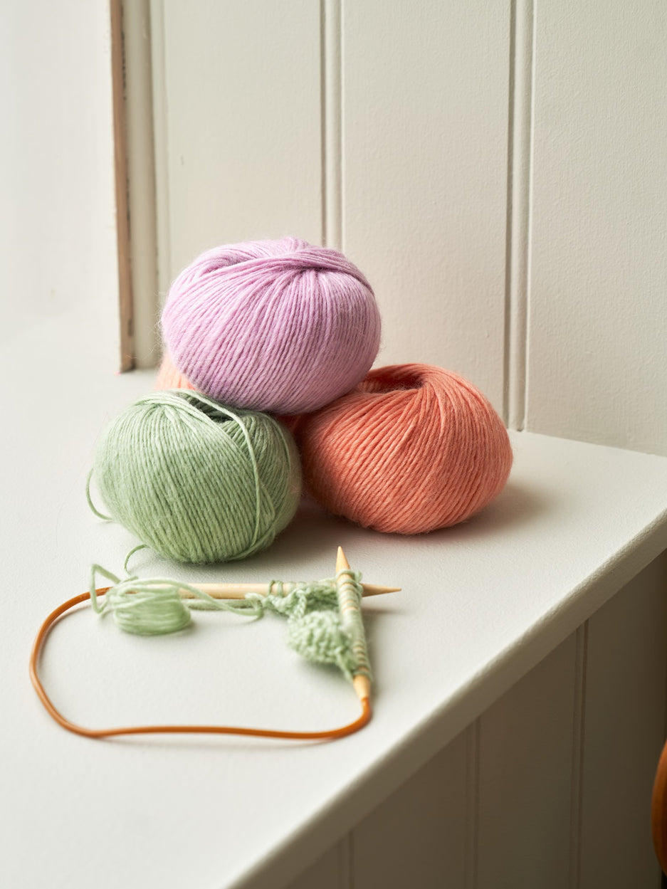 The sisters' wool bamboo yarn is made of 70% wool and 30% viscose from bamboo, and weighs 50 g. The yarn is STANDARD 100 by OEKO-TEX®-certified.
