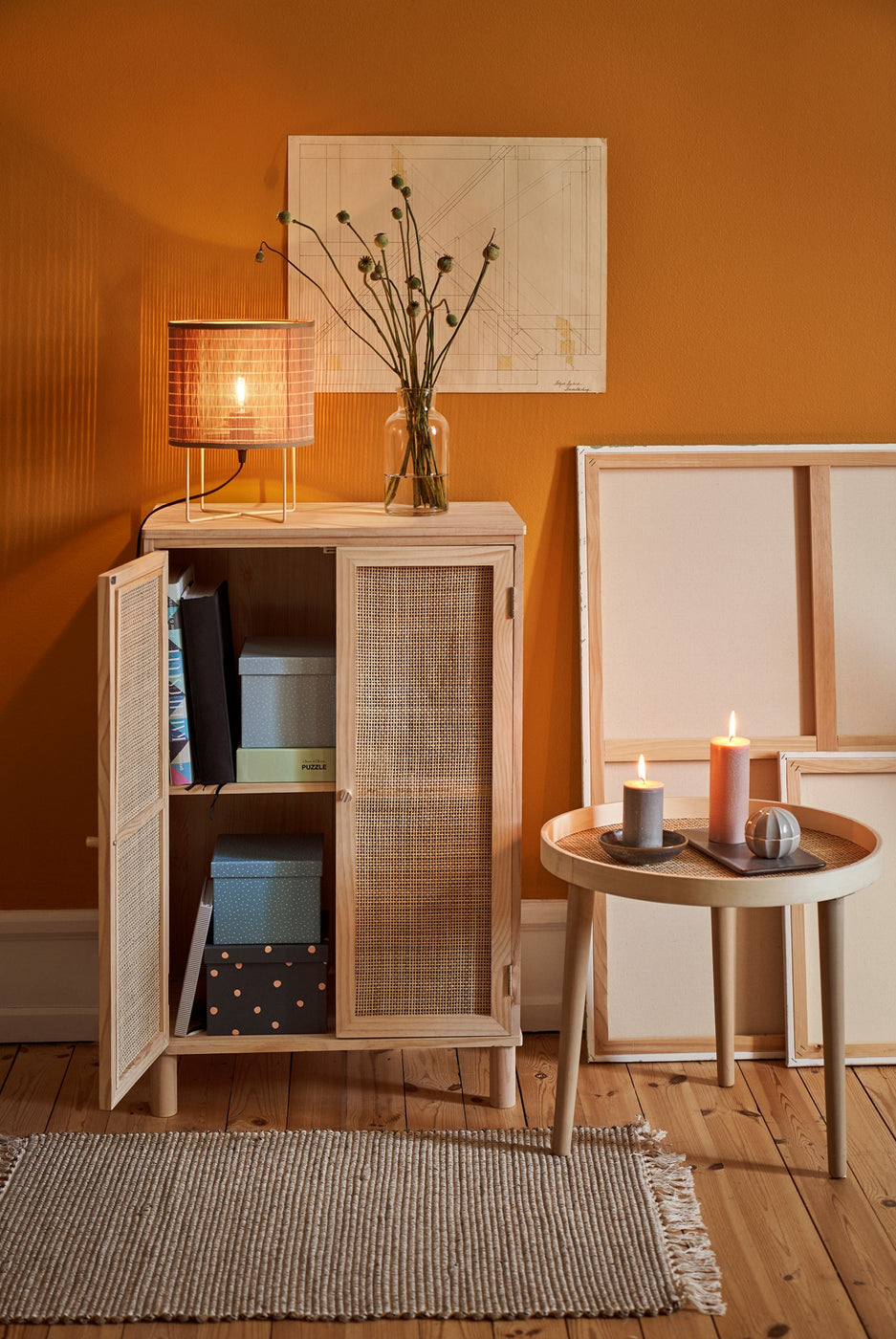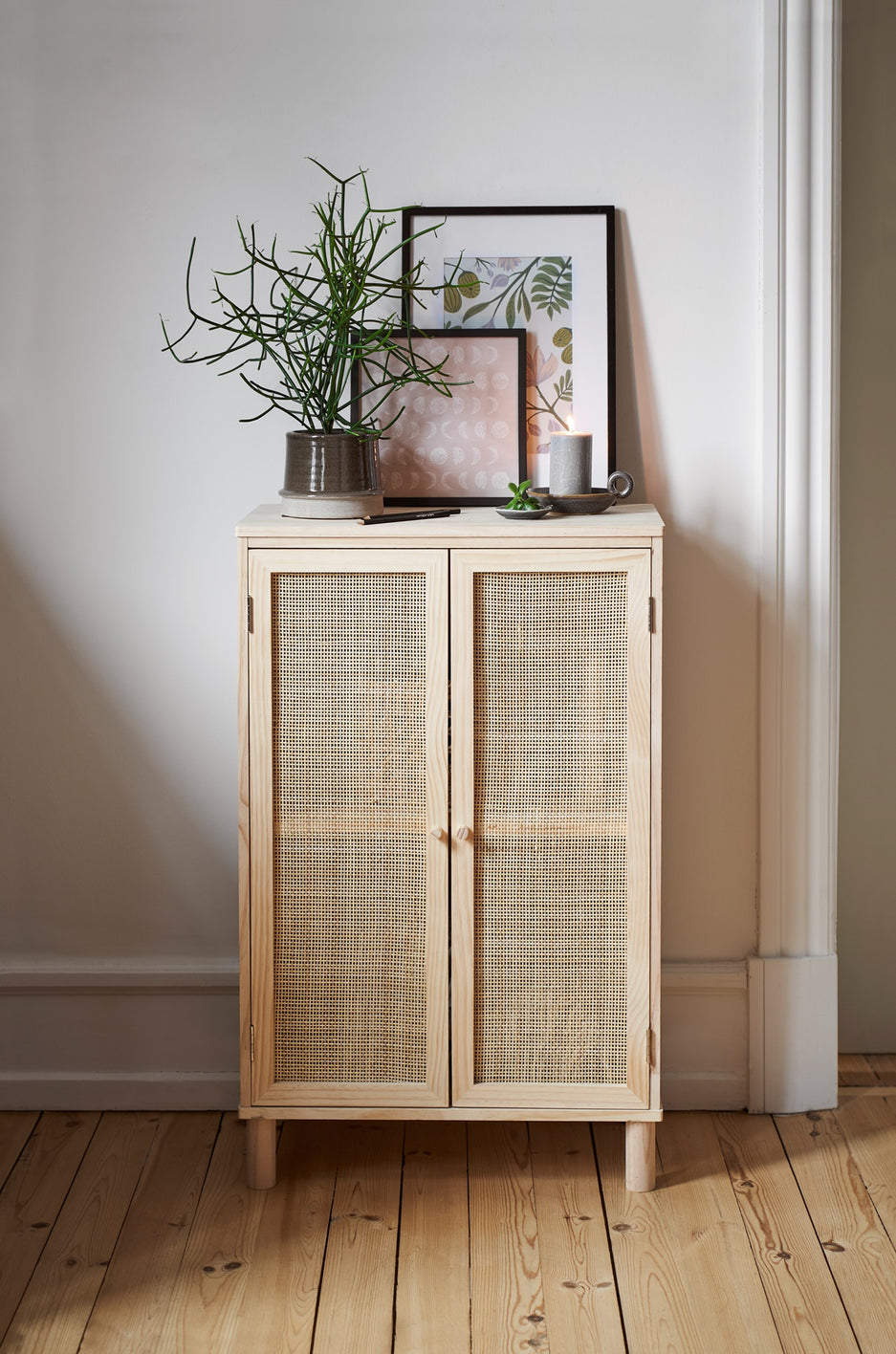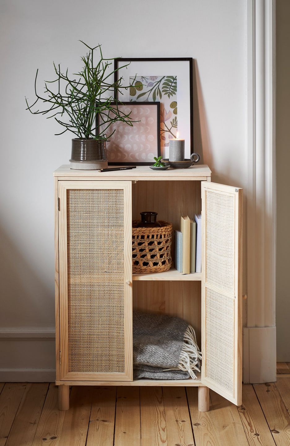 Fura viður/spanskreyr. 57.5 x 33.5 x 90 cm.