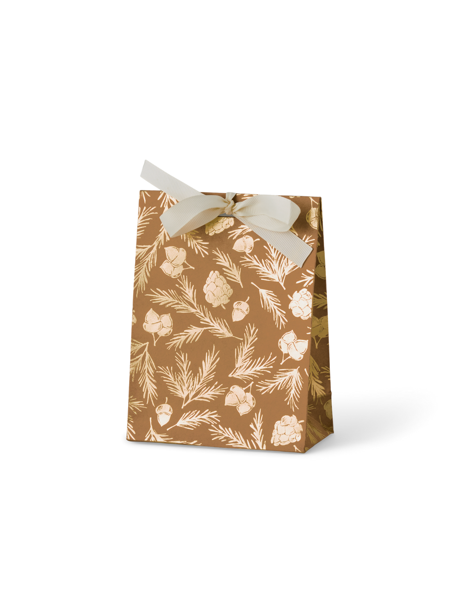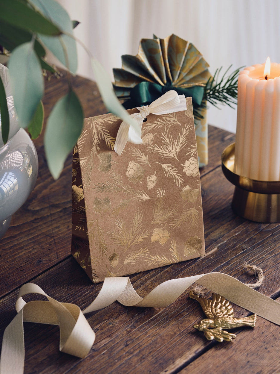 "Such a charming way to present a thoughtful surprise," Anna says, admiring the elegant gift bag. "The ribbon adds a touch of festive joy," Clara adds, tying it neatly.