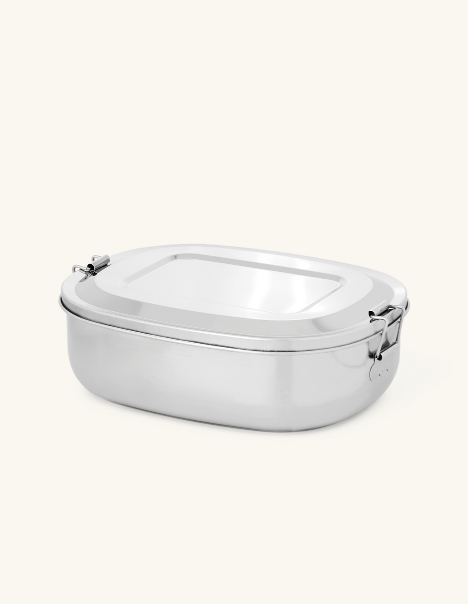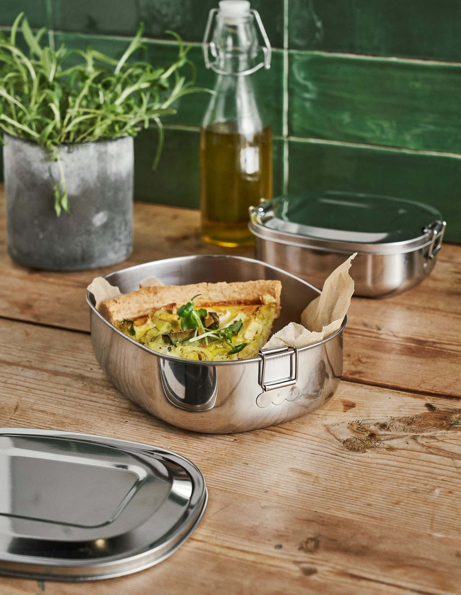 The sisters' lunch box is made of metal and has practical clasps for easy opening and closing.