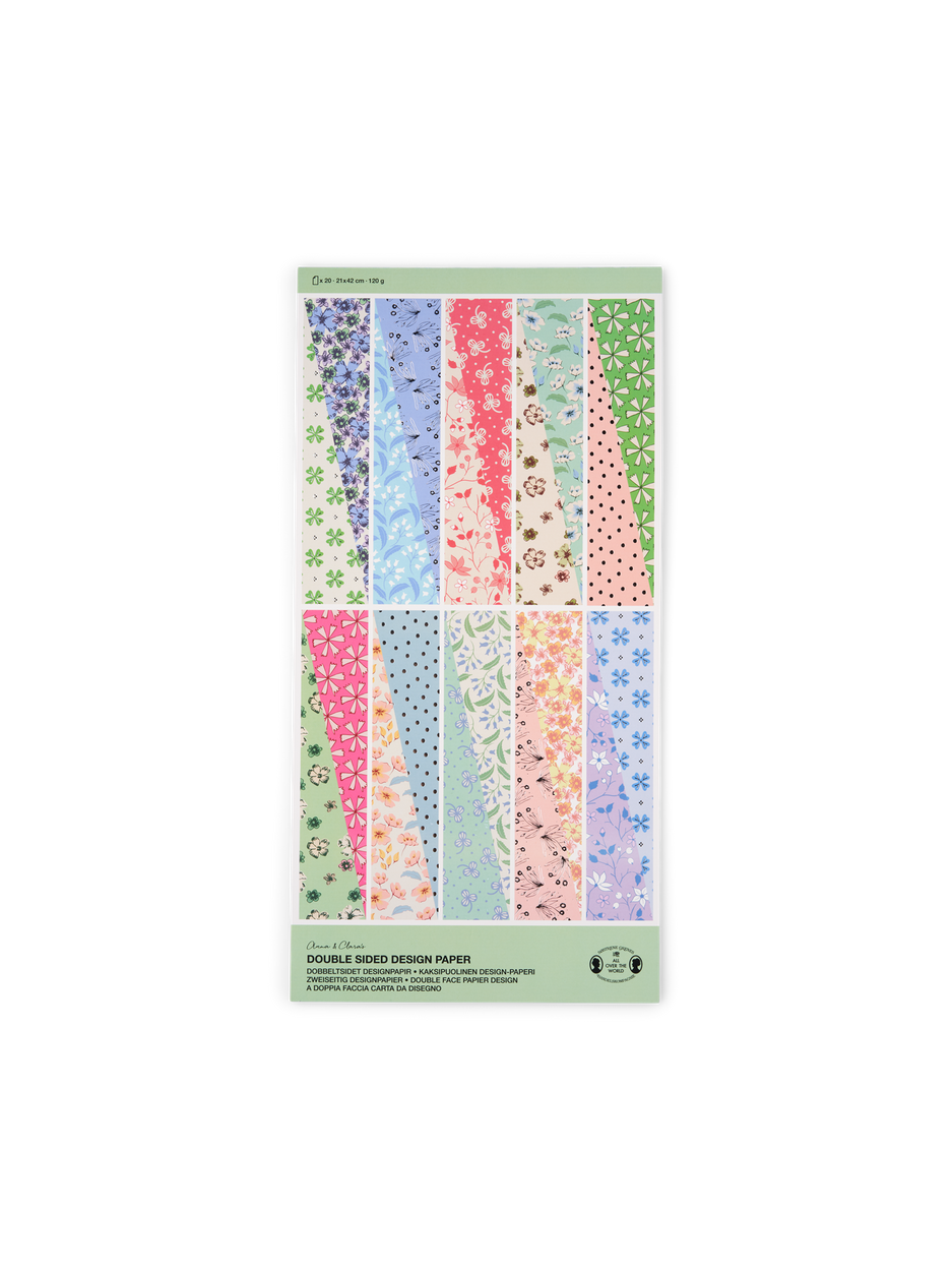 The sisters' design paper is made of FSC®-certified paper and the block has 20 sheets with assorted designs. The paper is ideal for all sorts of paper crafts, from making your own greeting cards to folding charming paper flowers or decorations.
