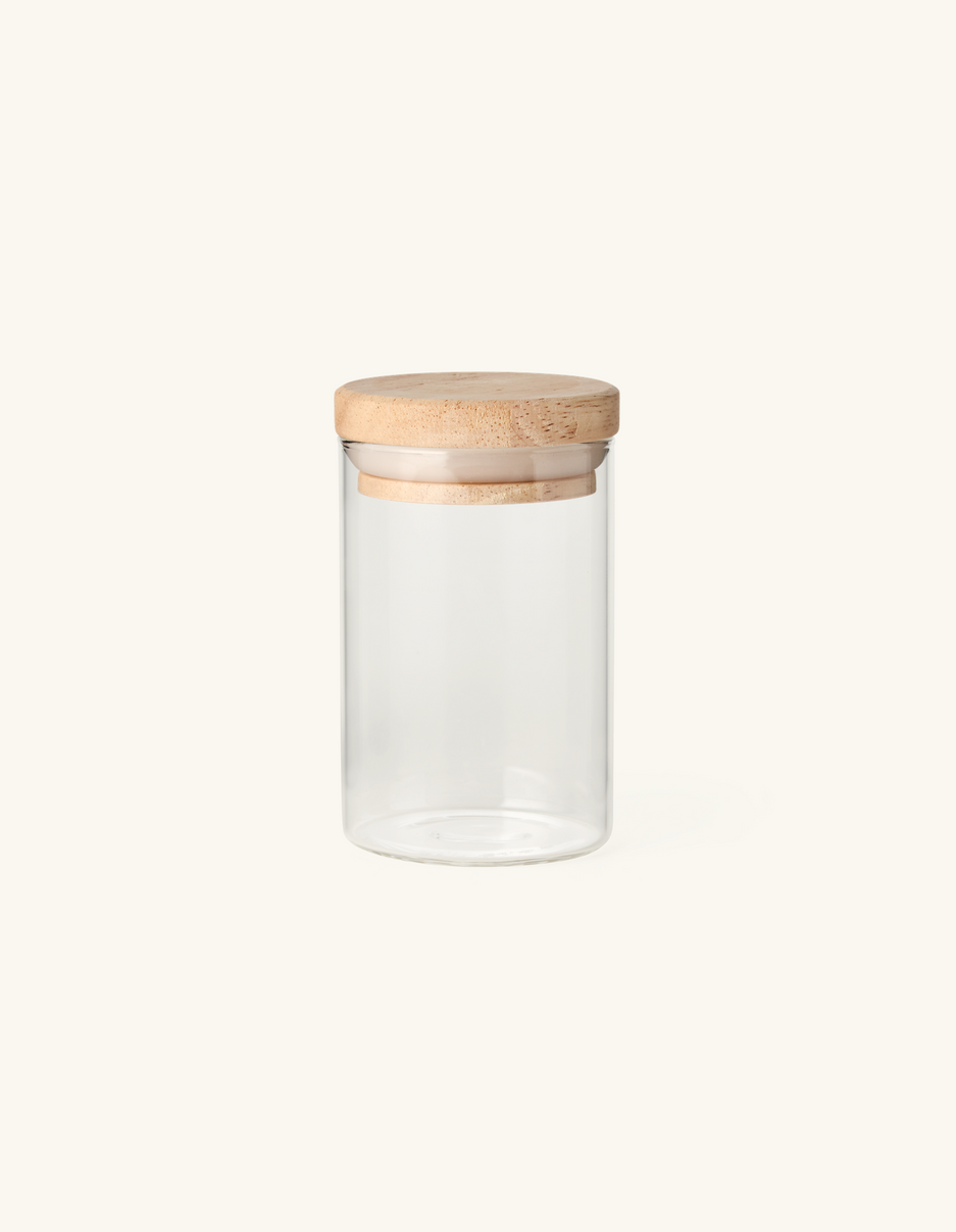 Gler/eik viður. 5.5 x 8.5 cm. 150 ml.