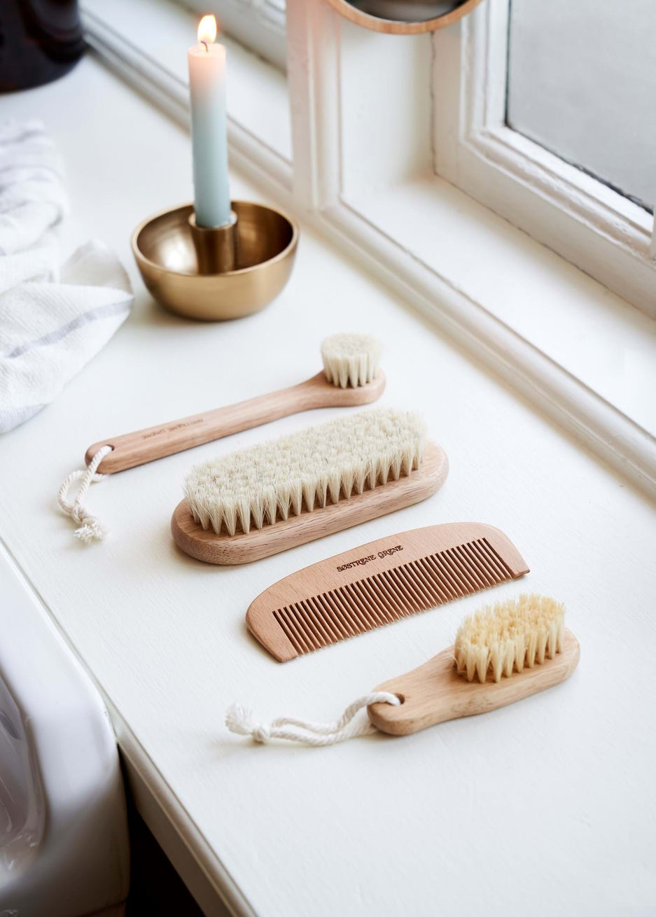 Gúmmí viður/tampico fibre. 10.5 x 3.9 cm.