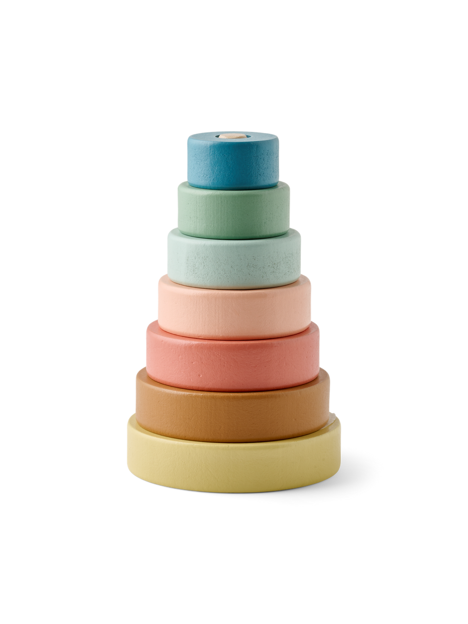 Anna and Clara's cupboard holds all kinds of delightful games and toys for the dear little ones to play with, like this colourful stacking tower. “There is endless fun to be had, stacking and unstacking the tower,” Anna believes.