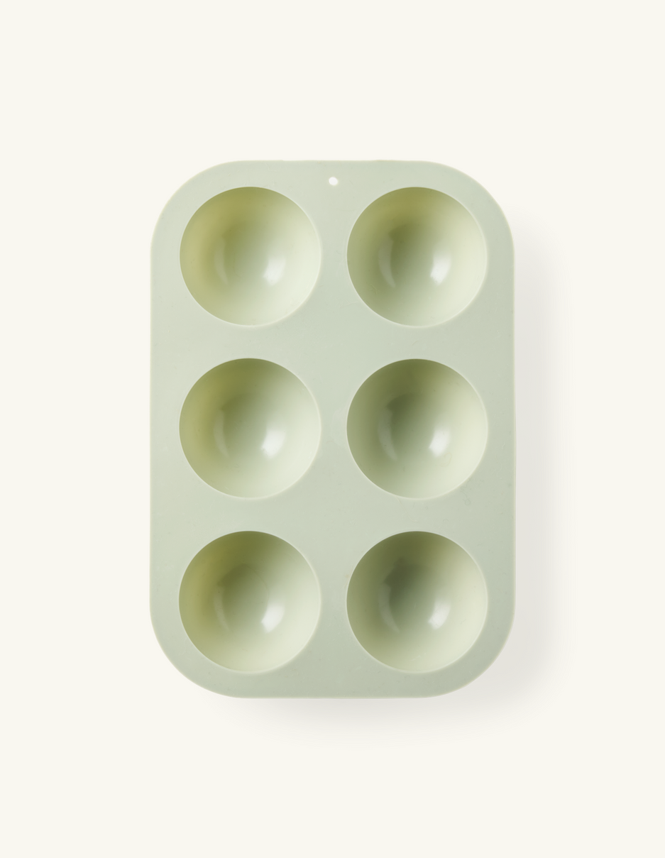 The sisters' ice tray has room for 6 cubes in half-sphere shapes. It is made of silicone and measures 13.5 x 19.5 x 2.5 cm.