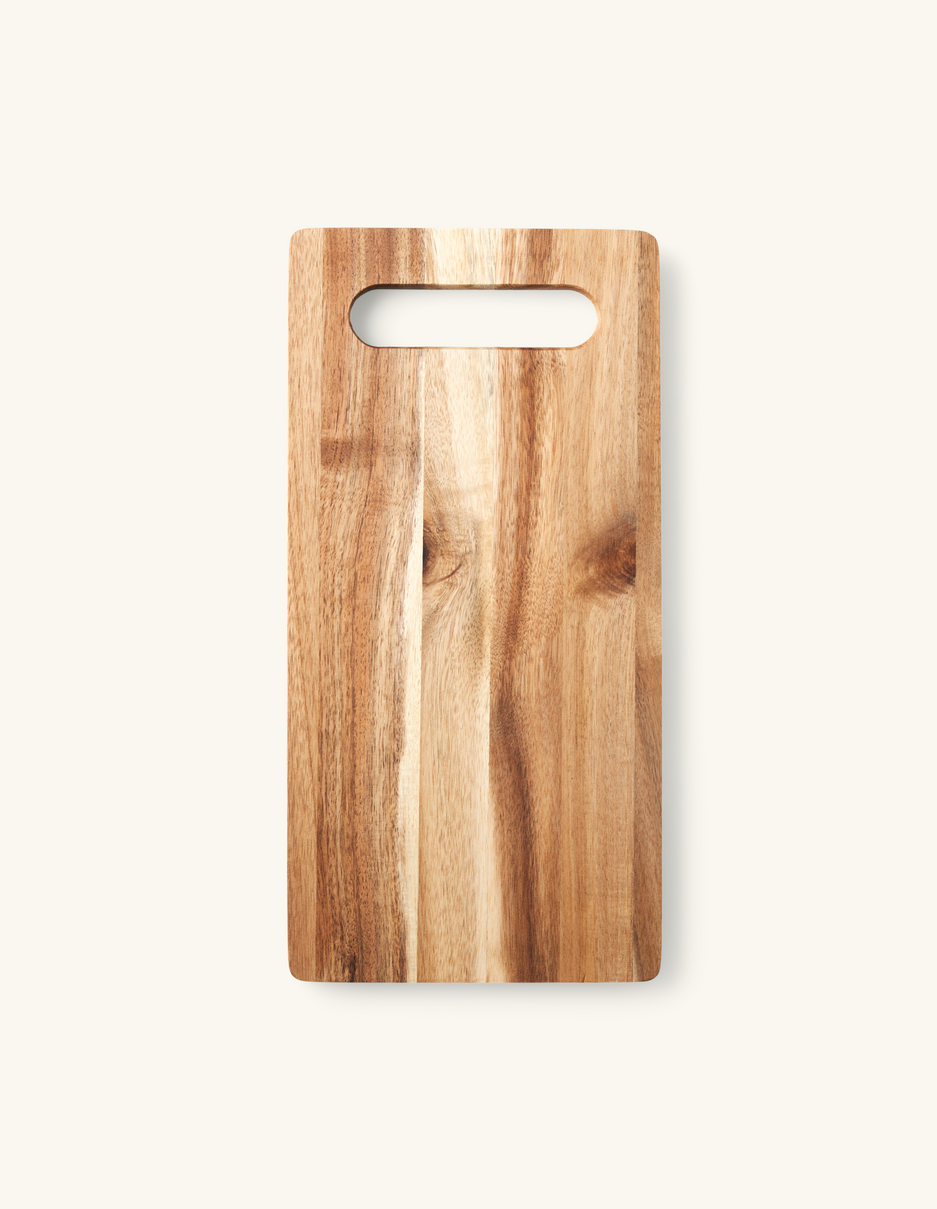 The sisters' cutting board is made of FSC®-certified acacia wood and measures 18.9 x 38 cm.