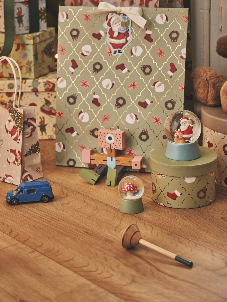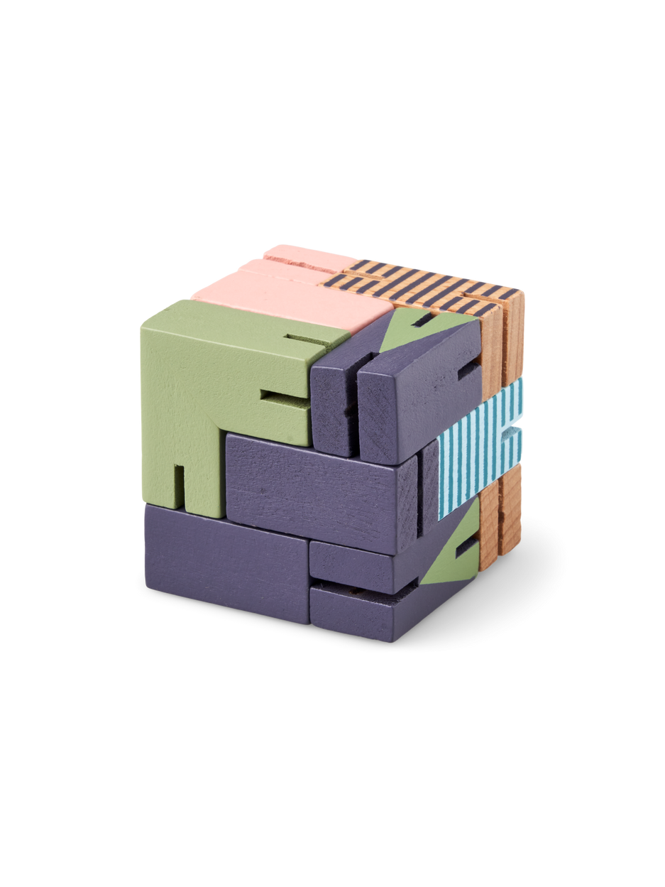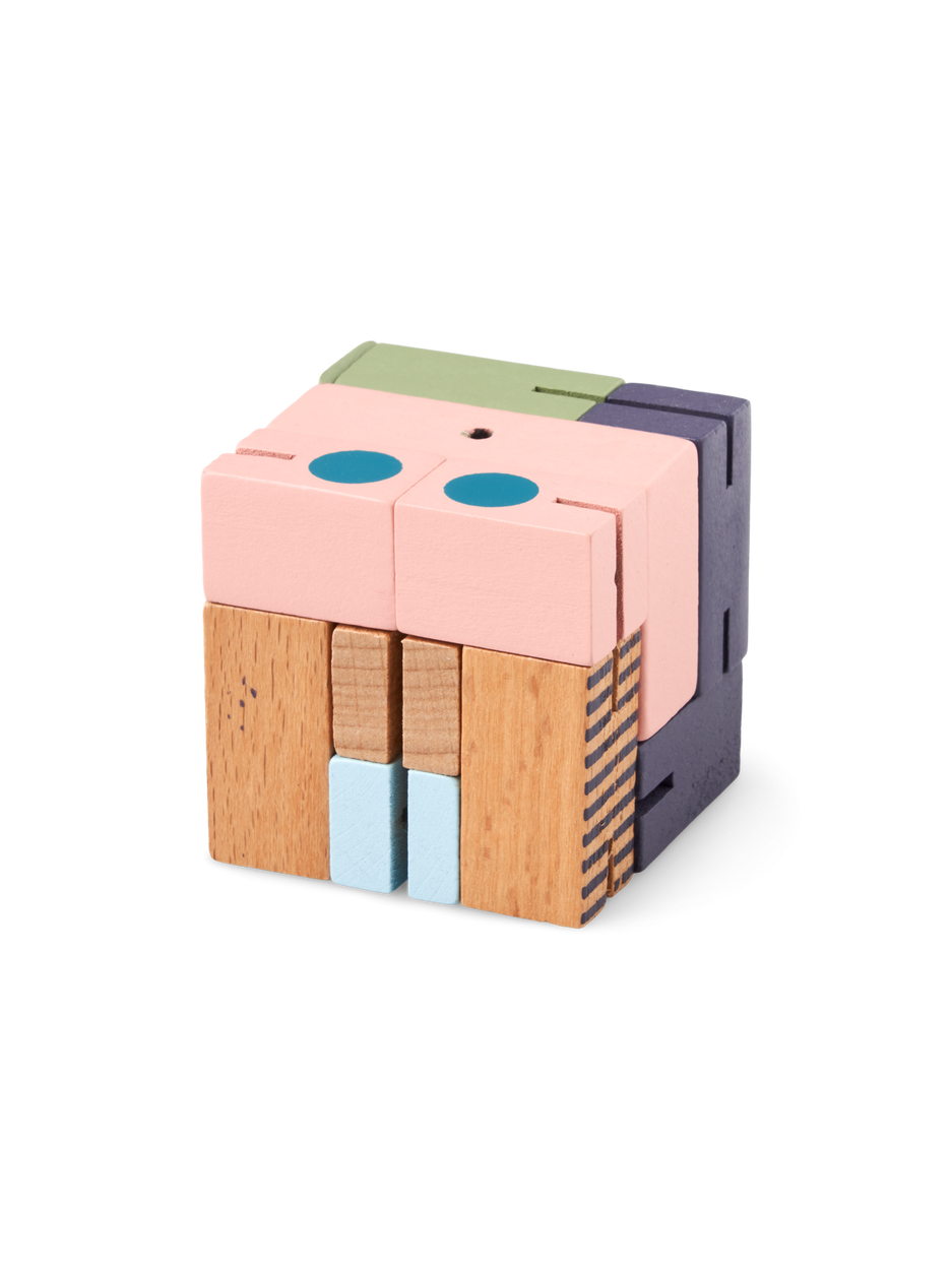 The sisters' toy robot is made of 100% FSC®-certified beech wood as well as polyester and rubber. Its limbs are connected by elastic string, so that you can move the body parts and make the robot do silly gestures and movements.