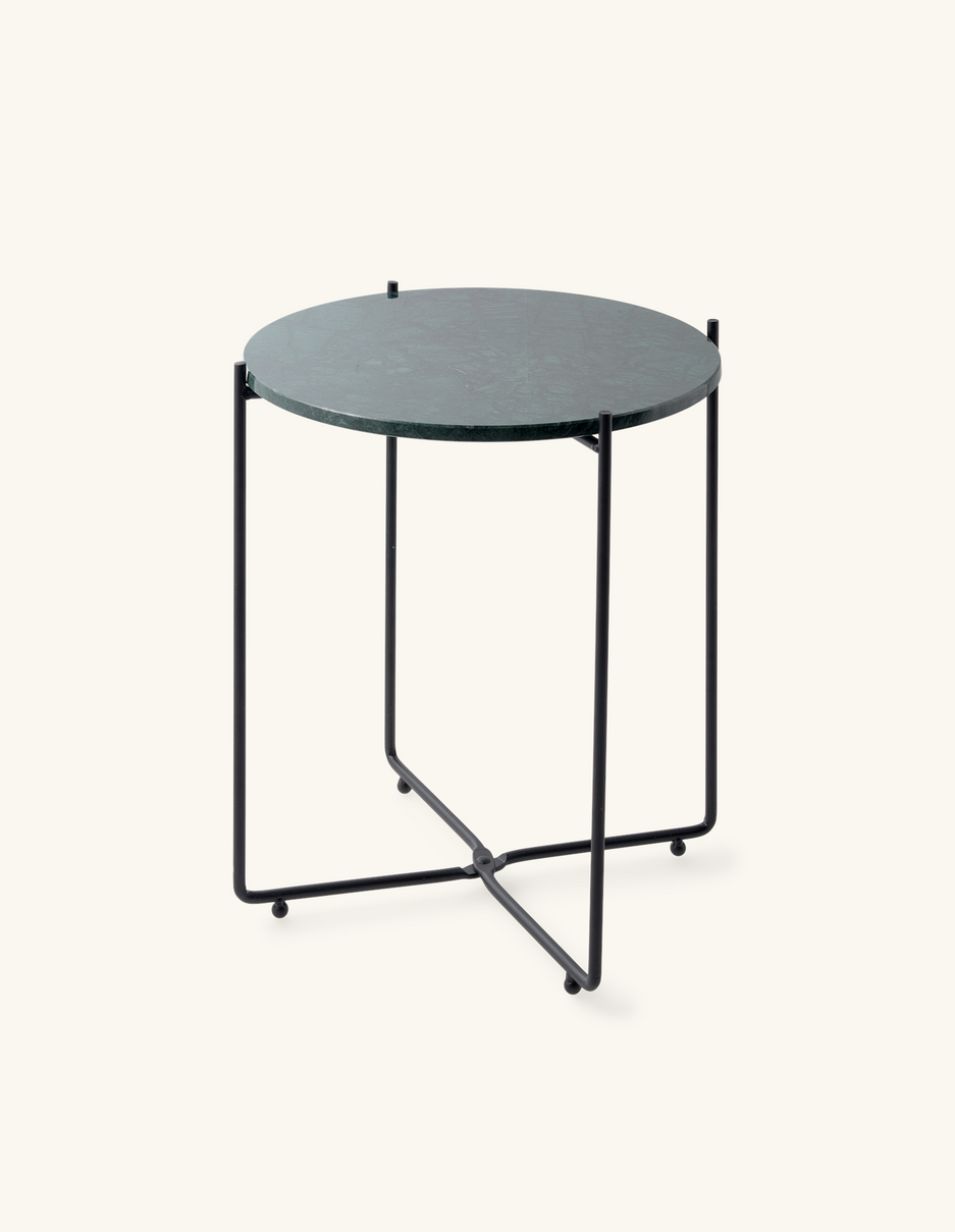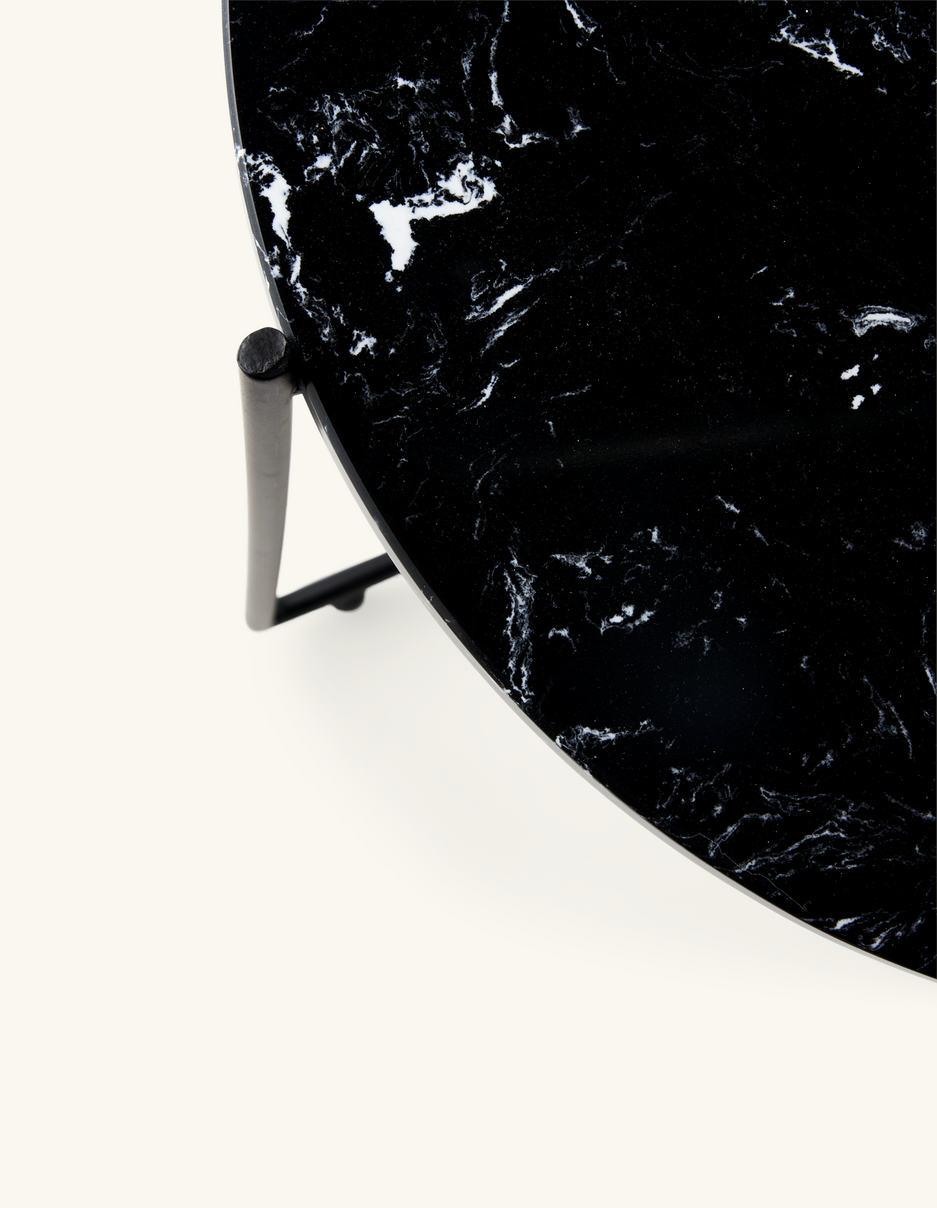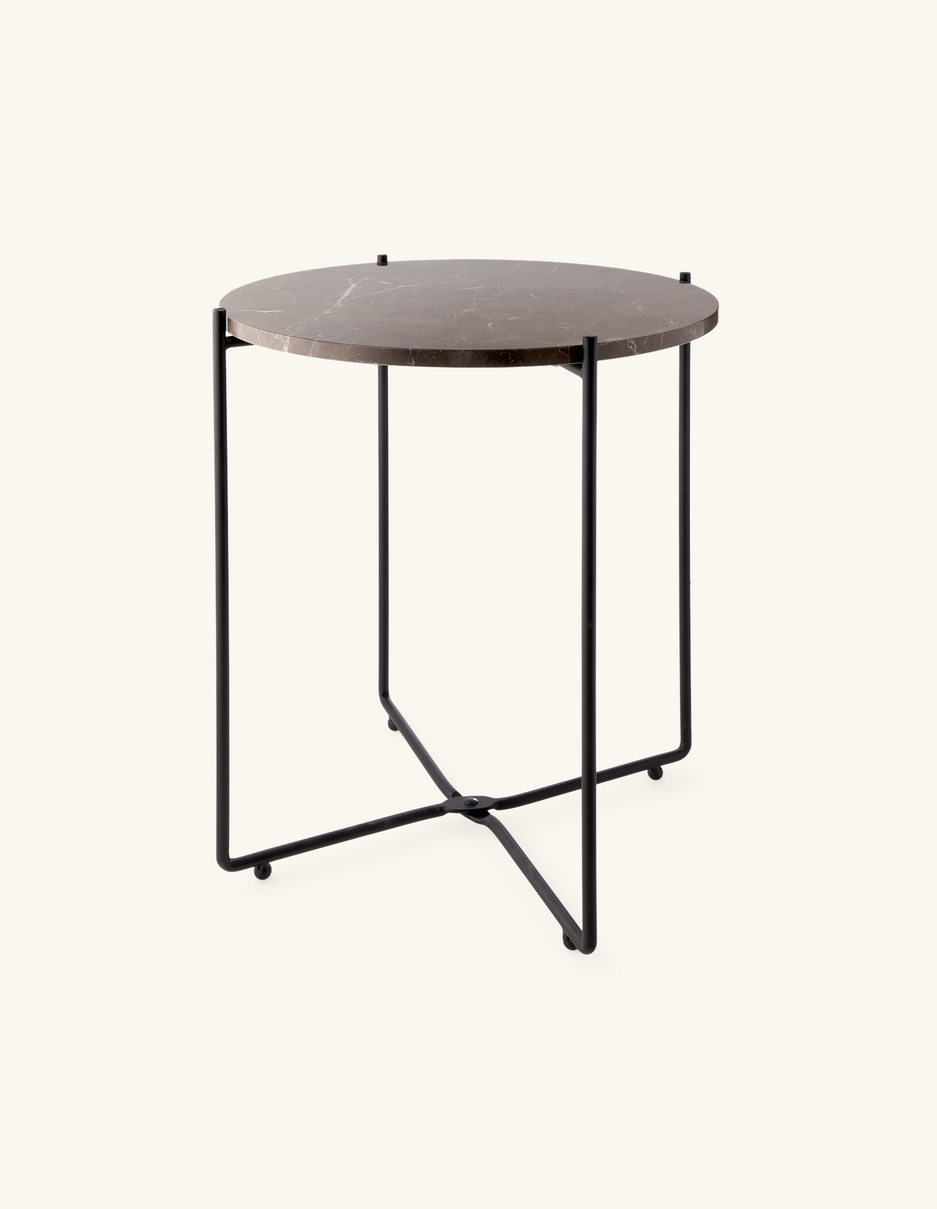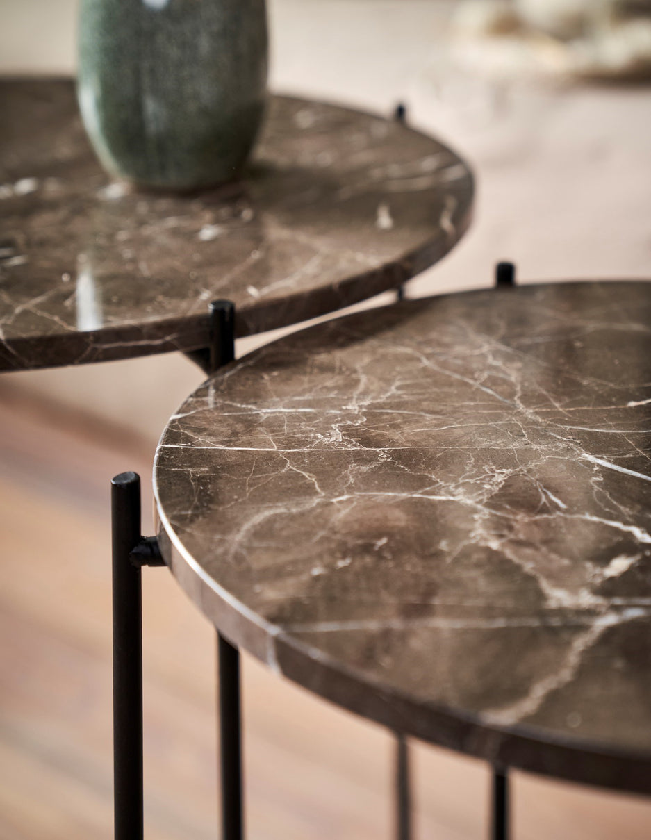 "This side table has a wonderfully elegant look with its lovely marble top," Clara says, and she places a vase with fresh flowers on the table. "A beautiful new addition to any interior."