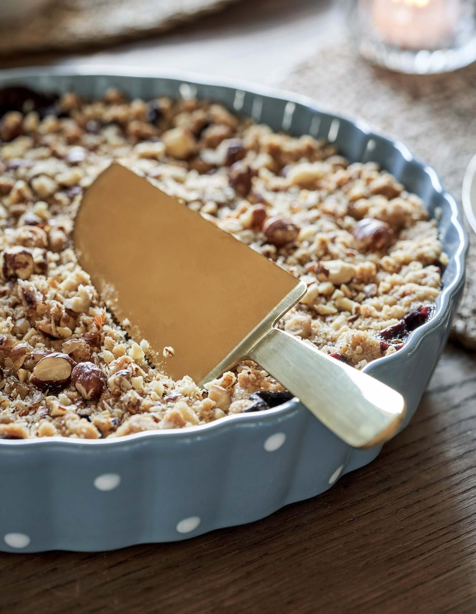 The sisters' cake server is made of stainless steel and is a lovely addition to any kitchen.