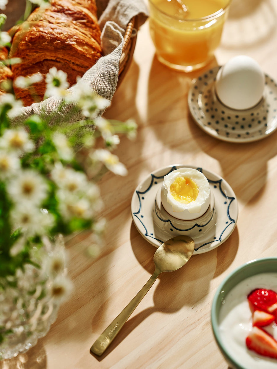 Quite apart from delicious nourishment, joy, stillness and togetherness are indispensable ingredients for Anna and Clara's breakfast. There is one thing, however, that the sisters particularly enjoy in the morning – a lovely soft-boiled egg. “Let a lovely egg cup hold your soft-boiled egg,†Clara says.