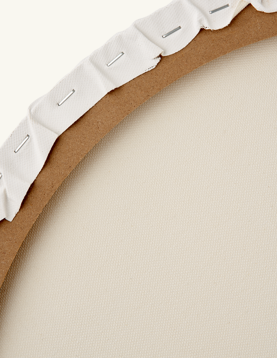 The sisters' canvas is made of cotton and FSC®-certified MDF. It is round and measures 25 cm in diameter.