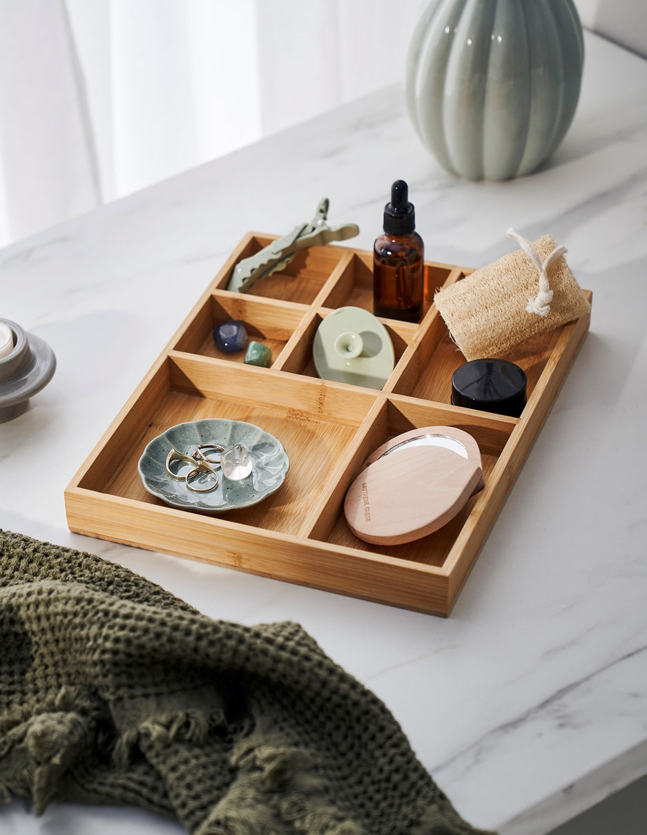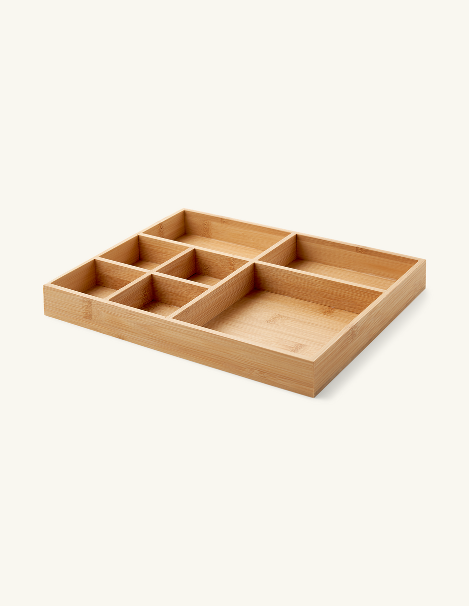 The sisters' organiser is made of 100% FSC®-certified bamboo and measures 30 x 24 x 3 cm.