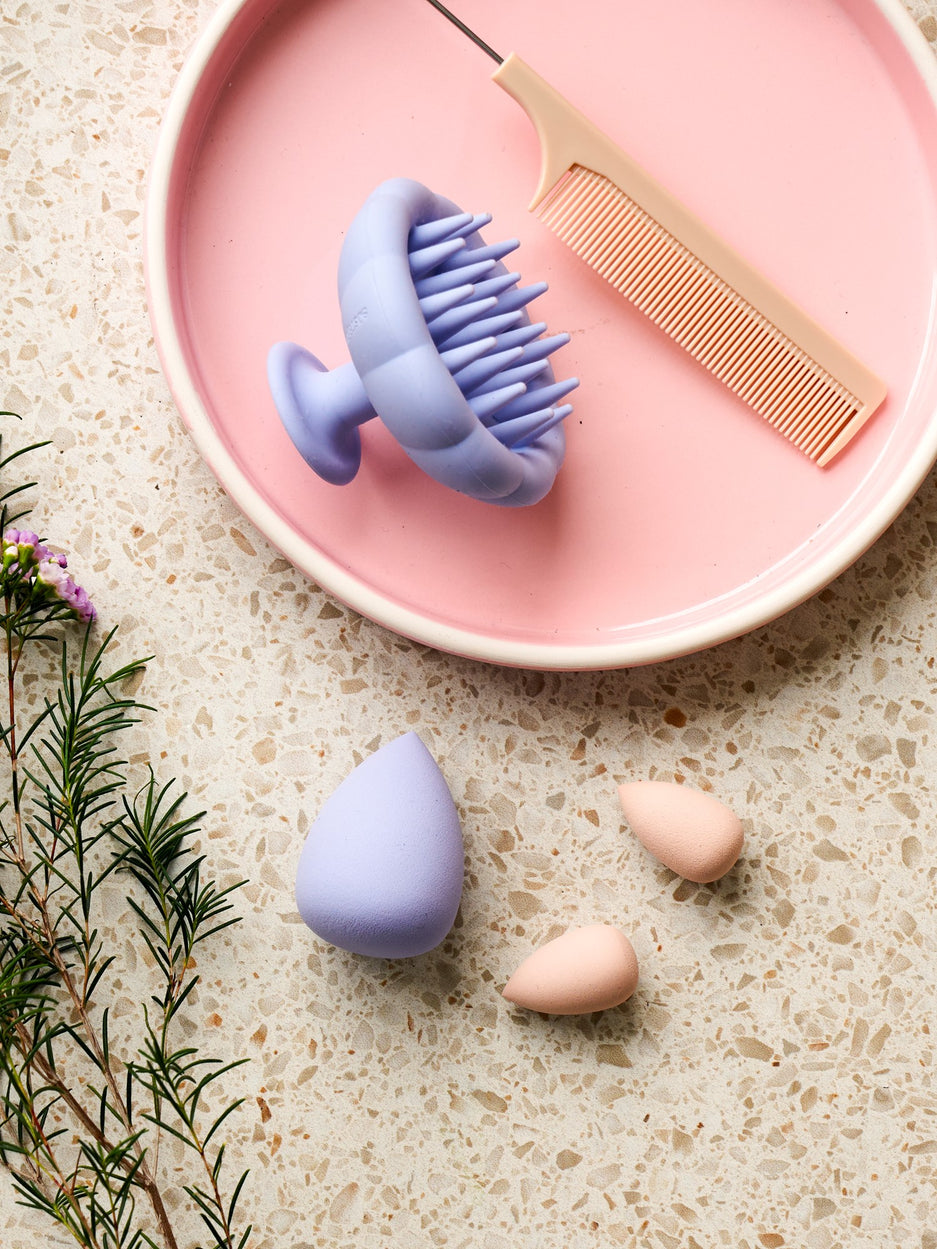 The sisters' scalp massager is made of silicone and measures 8.4 x 7 cm.