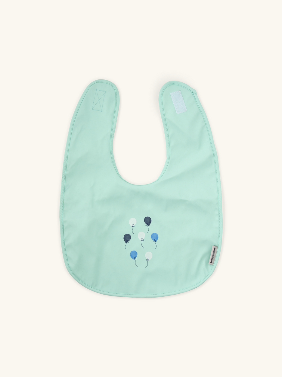 The sisters' bib is made of polyurethane and closes at the top with a hook and loop fastener.