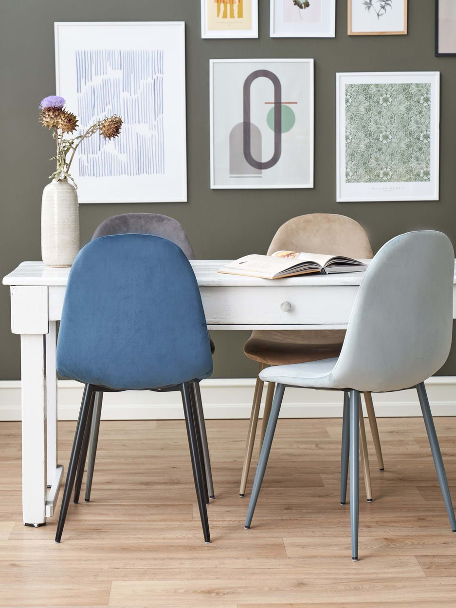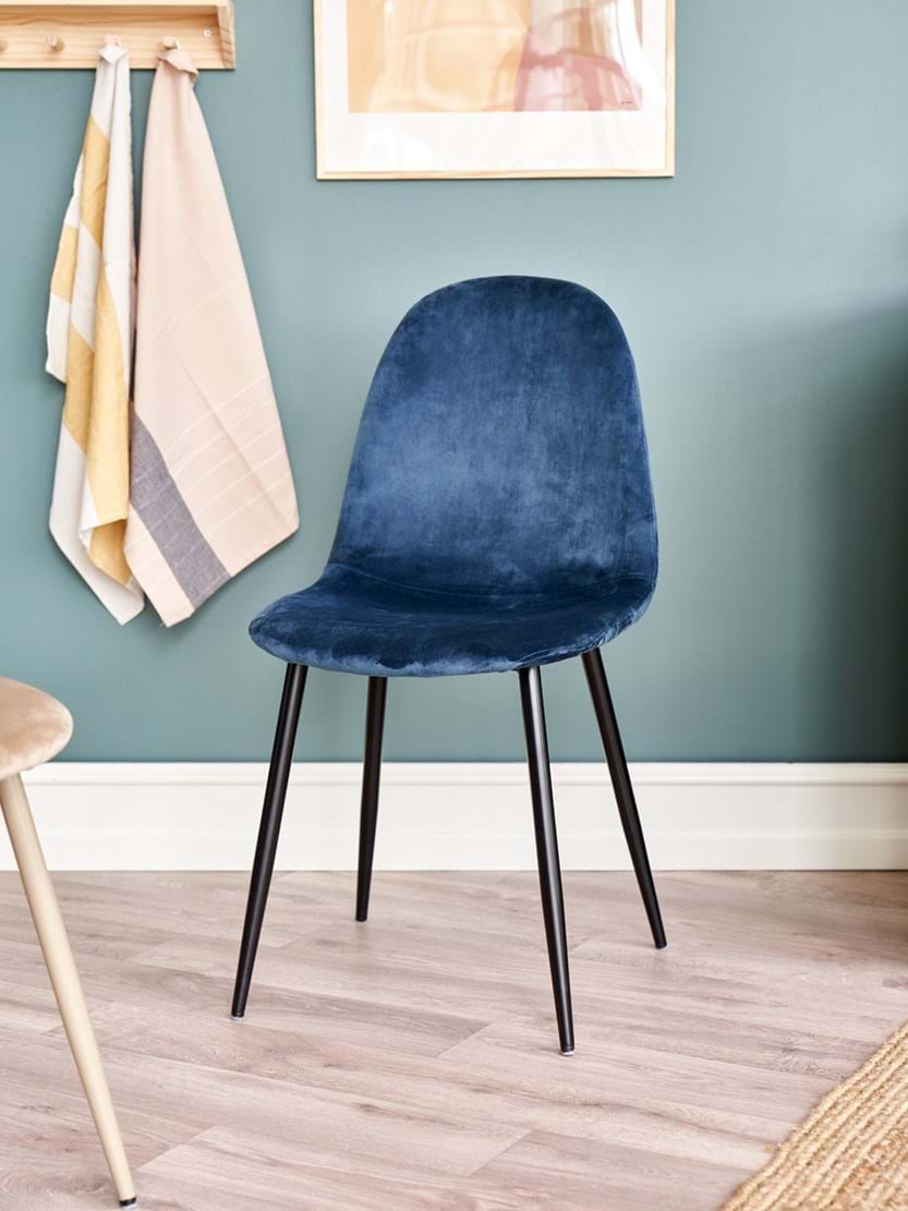Hinn íkoníski velúrstóll systranna er gerður úr ösp, járni, svampi og STANDARD 100 by OEKO-TEX®-vottuðu* pólýester og mælist 40 x 47 x 87 cm.