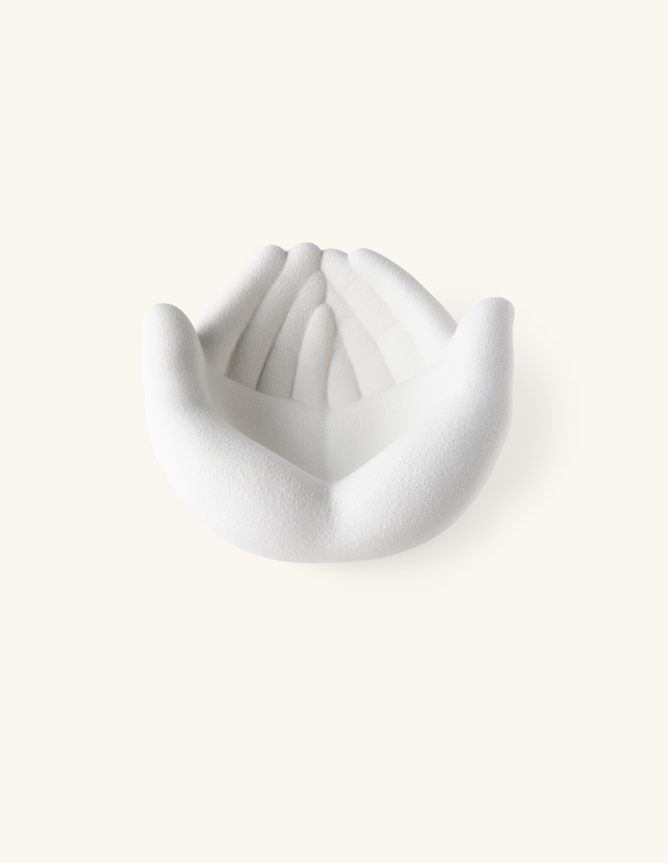 The sisters' decorative bowl is made of porcelain and measures 14.2 x 15 x 6.5 cm.