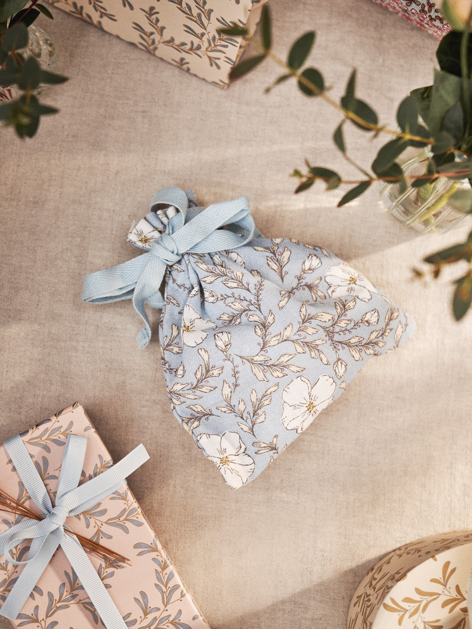 The sisters' gift bag is made of STANDARD 100 by OEKO-TEX-certified cotton. It is a charming way to wrap most gifts and tying a little bow adds the final touch.