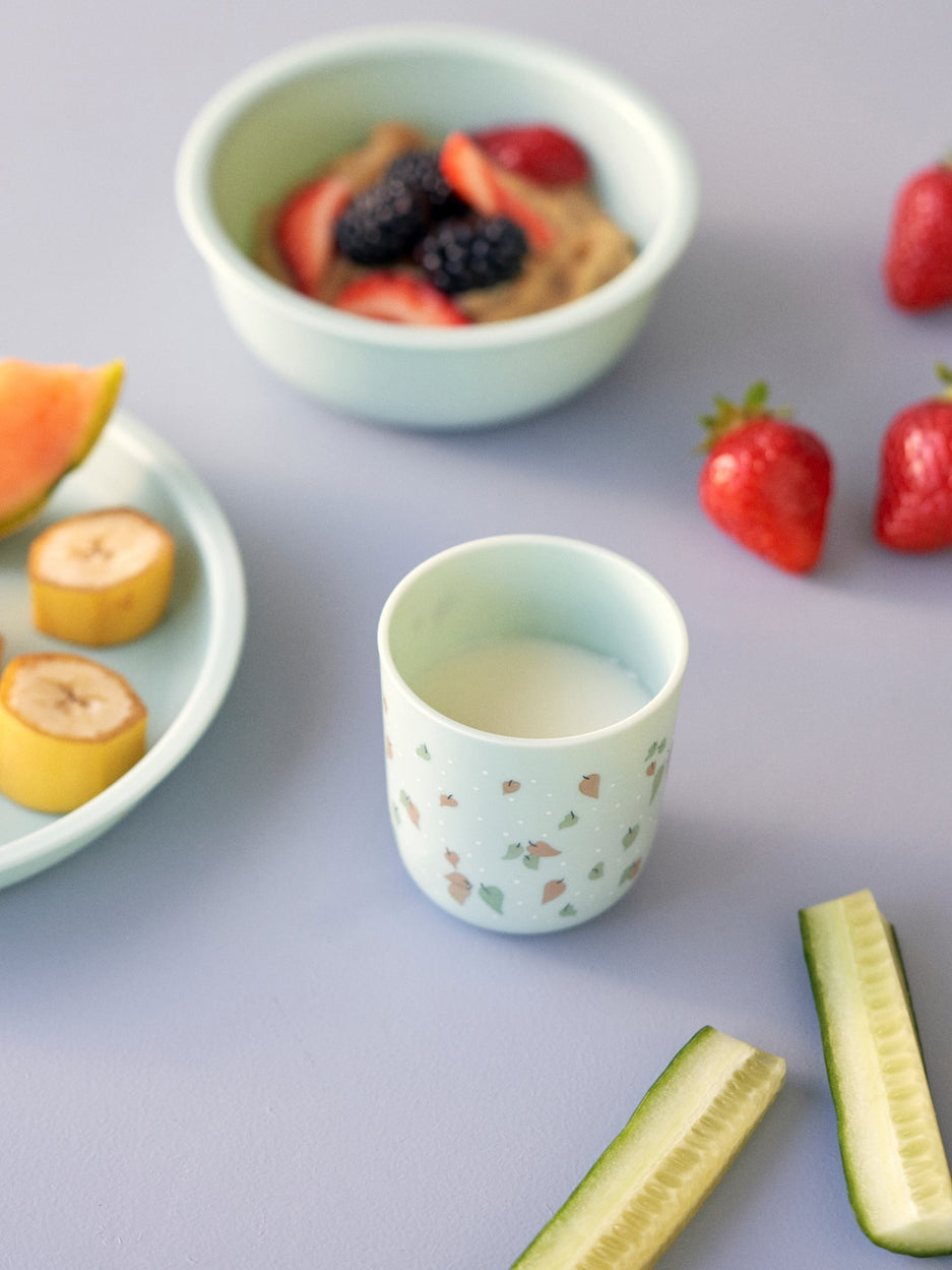 The sisters' cup for children is made of polypropylene and has a diameter of 7 cm and a height of 7.5 cm.