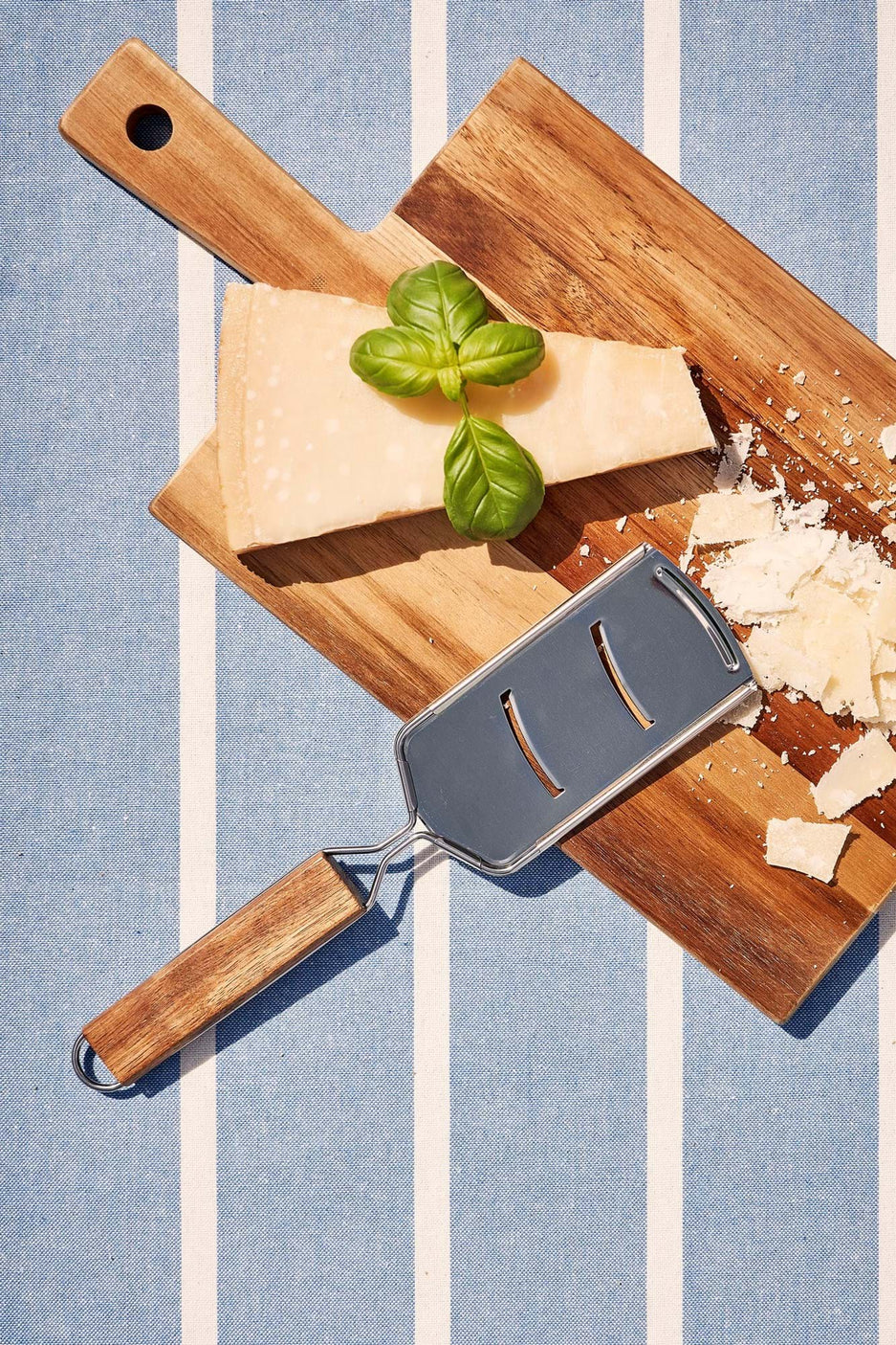 The sisters' grater is made of stainless steel with a wooden handle of 100% FSC®-certified acacia. The grater measures 25 cm.