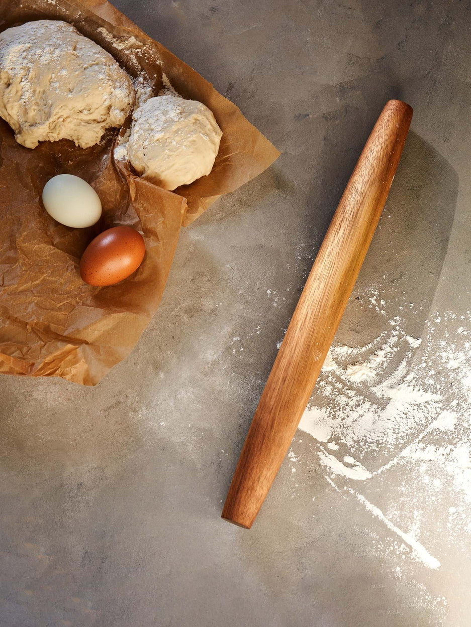 The sisters' rolling pin is made of FSC®-certified acacia wood and measures 3.6 x 40.6 cm.