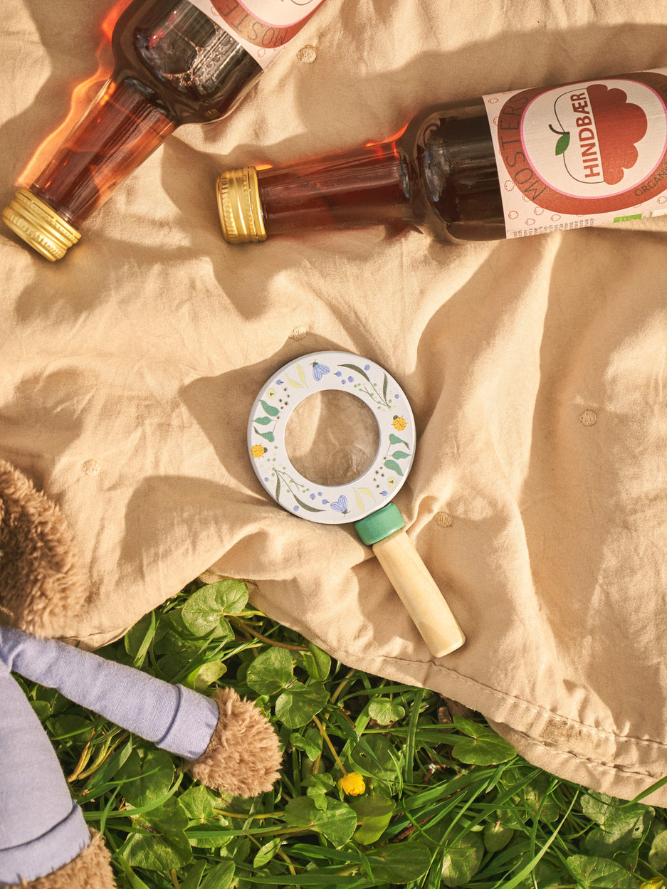 The sisters' toy magnifying glass is made of 100% FSC®-certified beech wood as well as acrylic.