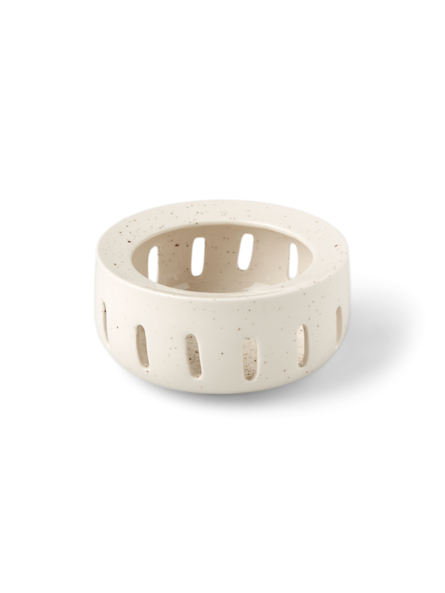 The sisters' ceramic tea warmer measures 13 cm in diameter and 6.5 cm in height. It fits a tealight candle, and it is ideal for keeping the tea in the pot warm in an elegant manner as it stands on the table.