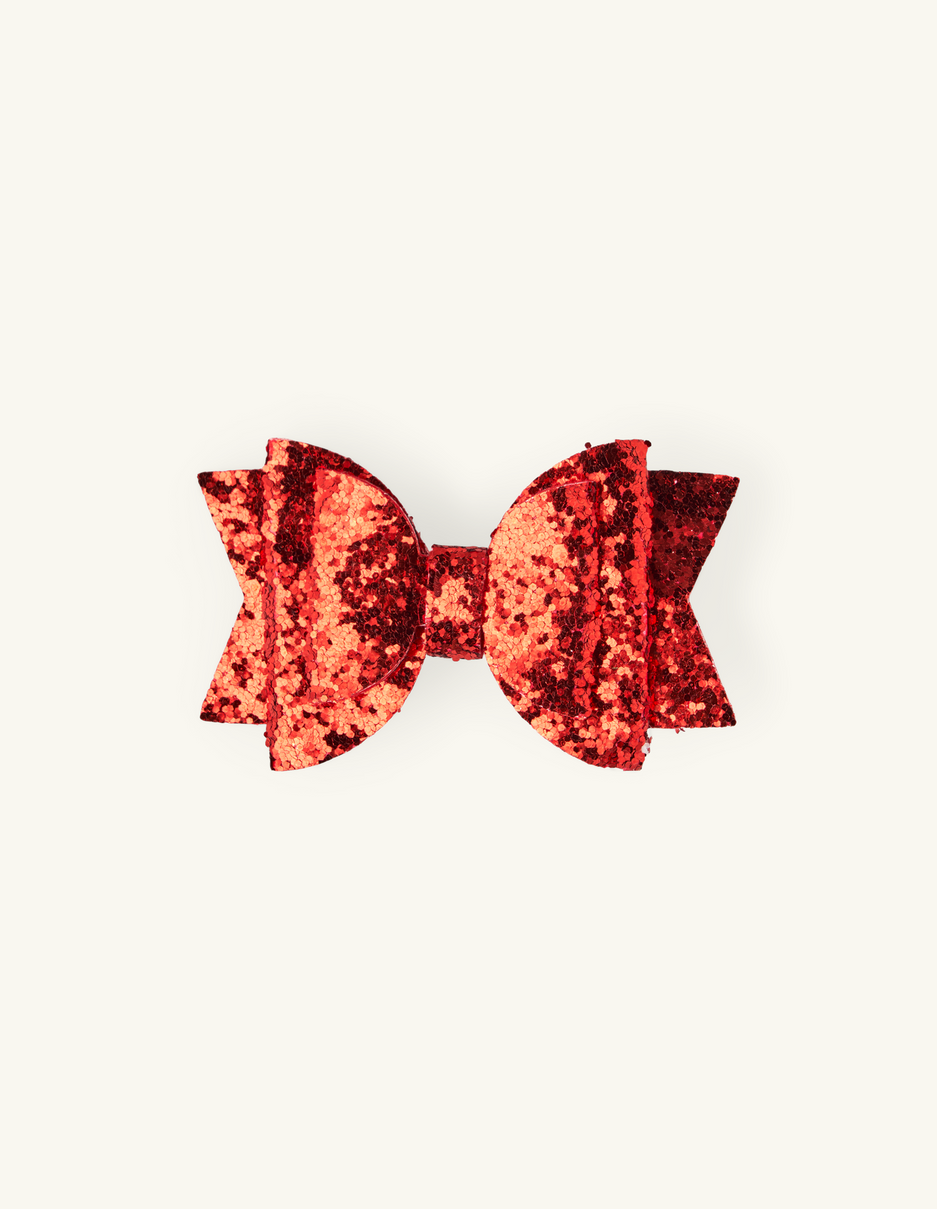 The sisters' hair clip has a glittery bow for a bit of festive flair.