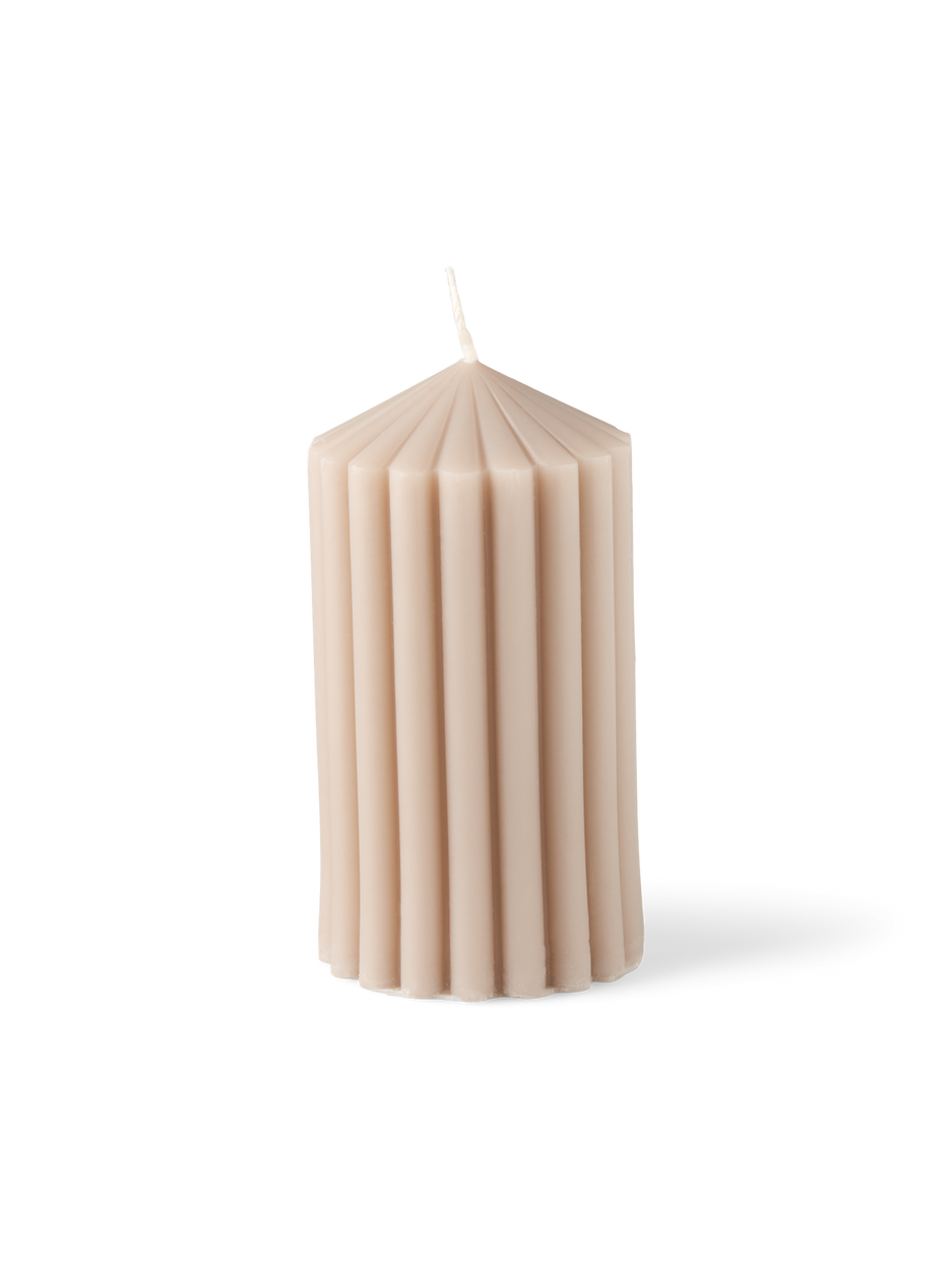 The sisters' pillar candle with grooves has an approximate burn time of 40 hours.