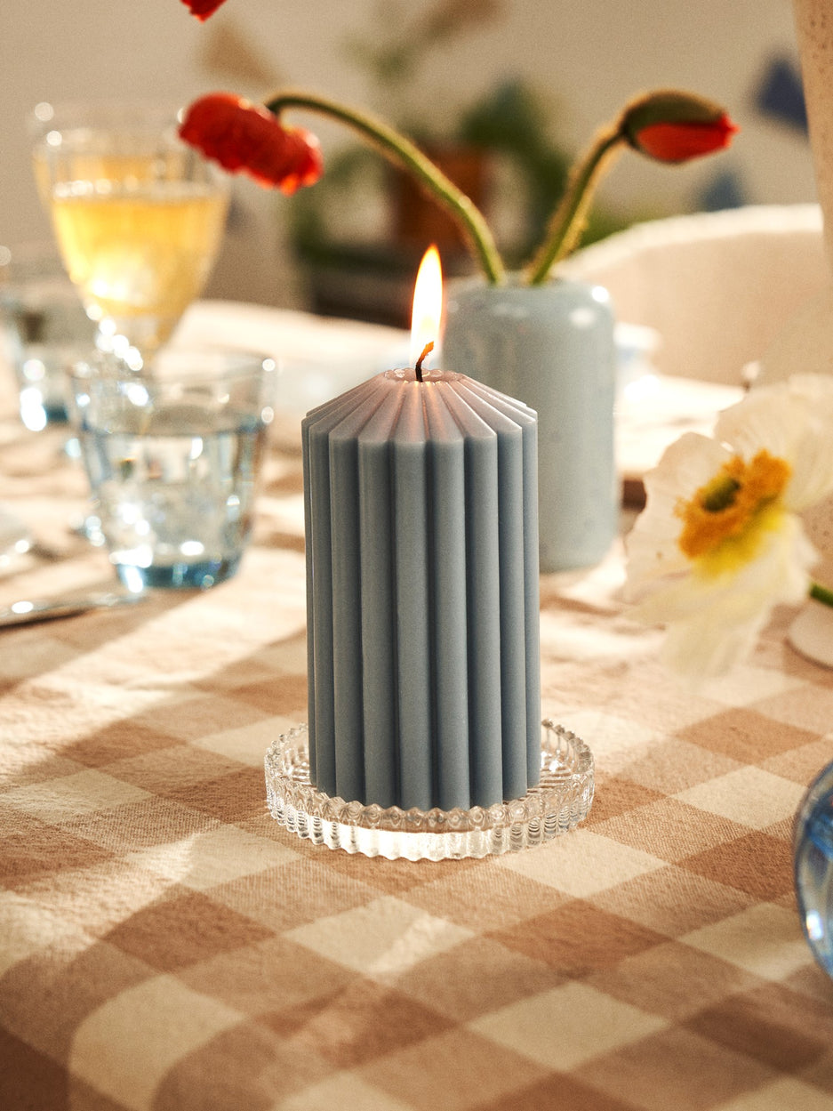 The texture adds an elegant touch to your décor, and the candle can be used for a wealth of purposes. You can, for example, use it alone or combined with different sizes to create beautiful and customised centrepieces.