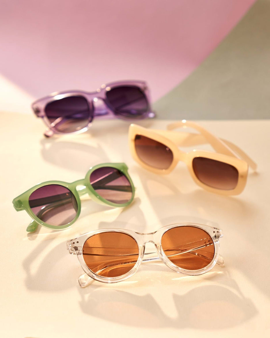 The sisters' sunglasses with UV400 protection are made of polycarbonate.