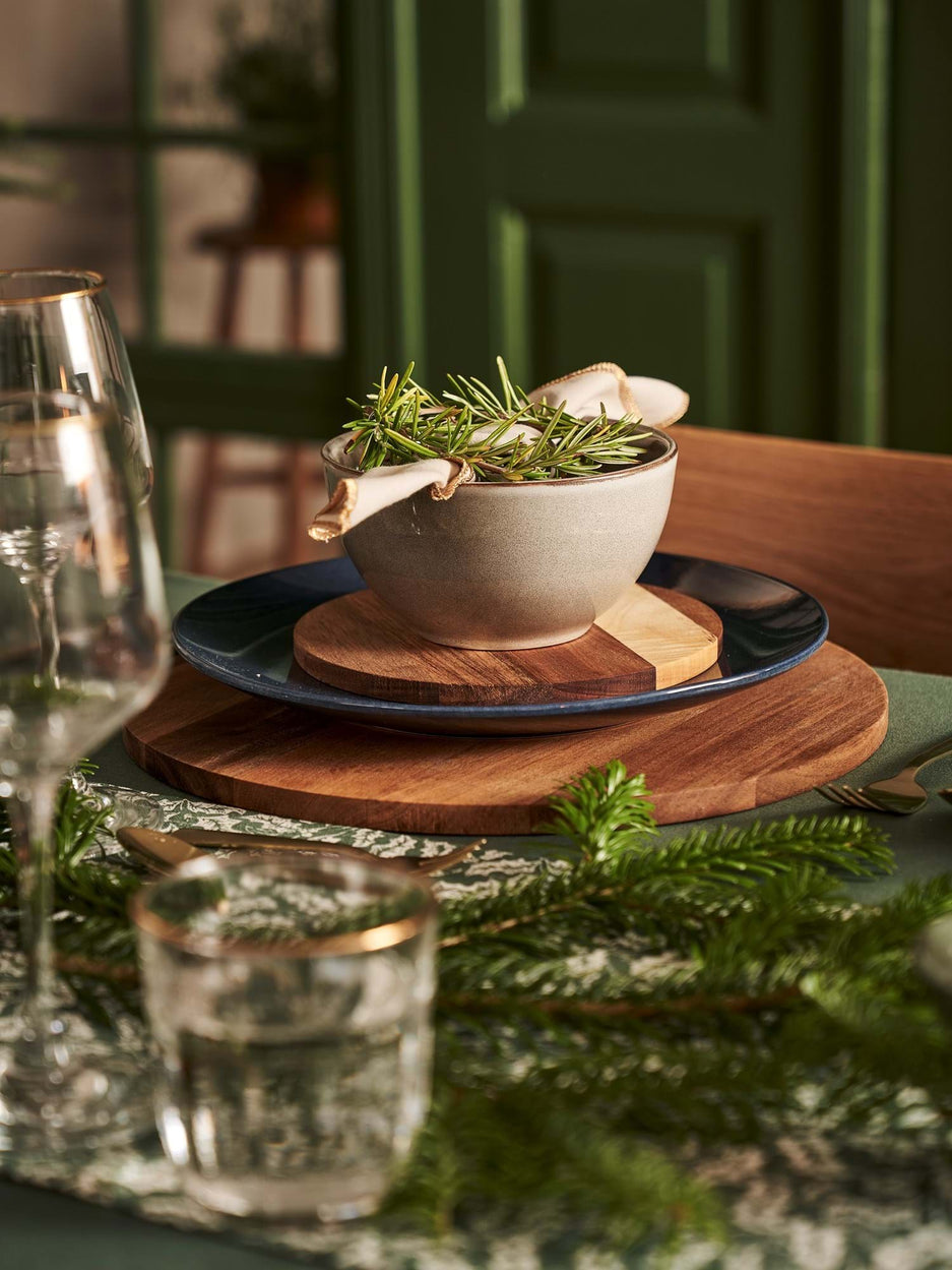 The sisters' chopping board is made of 100% FSC®-certified acacia wood and measures 18 x 1 cm.