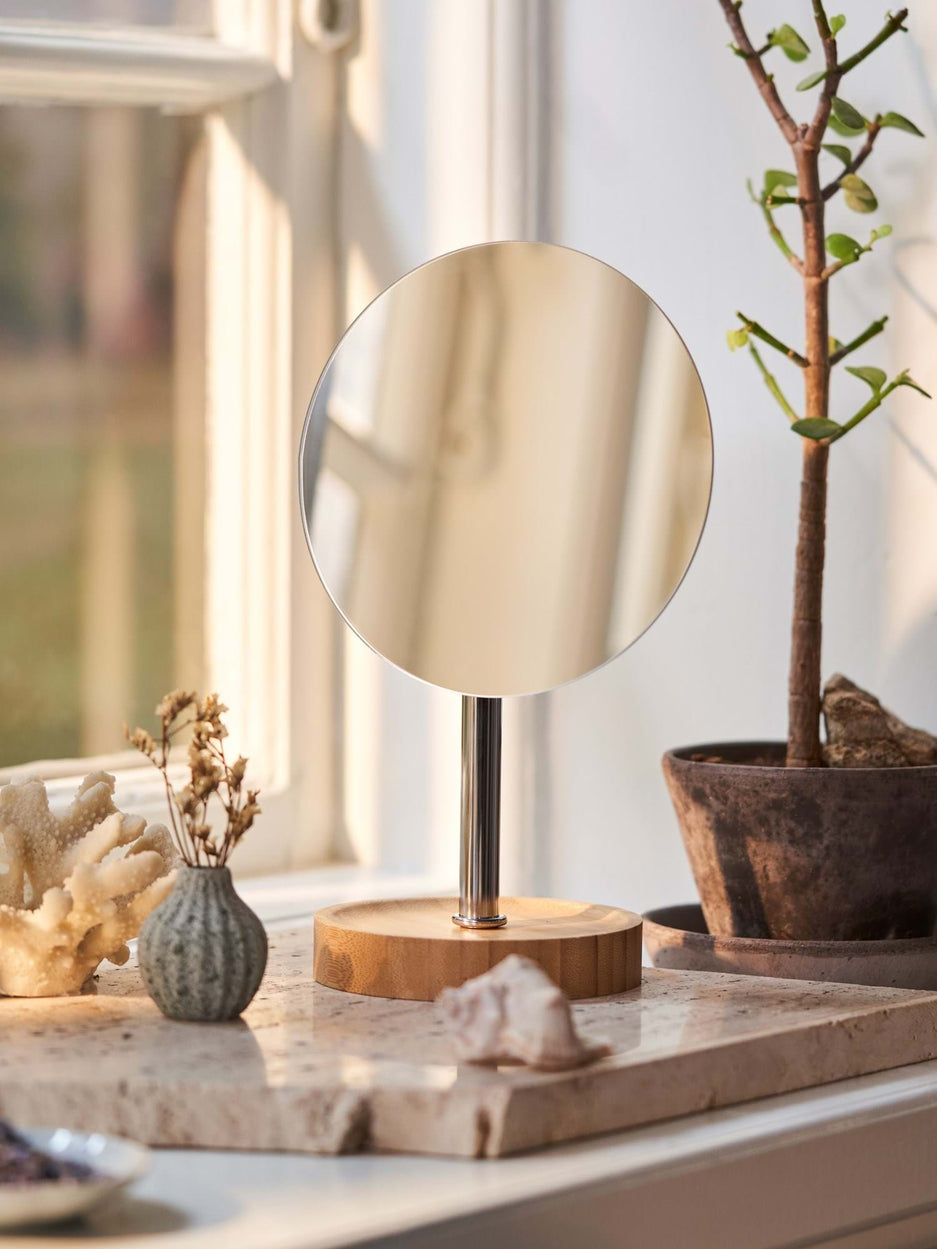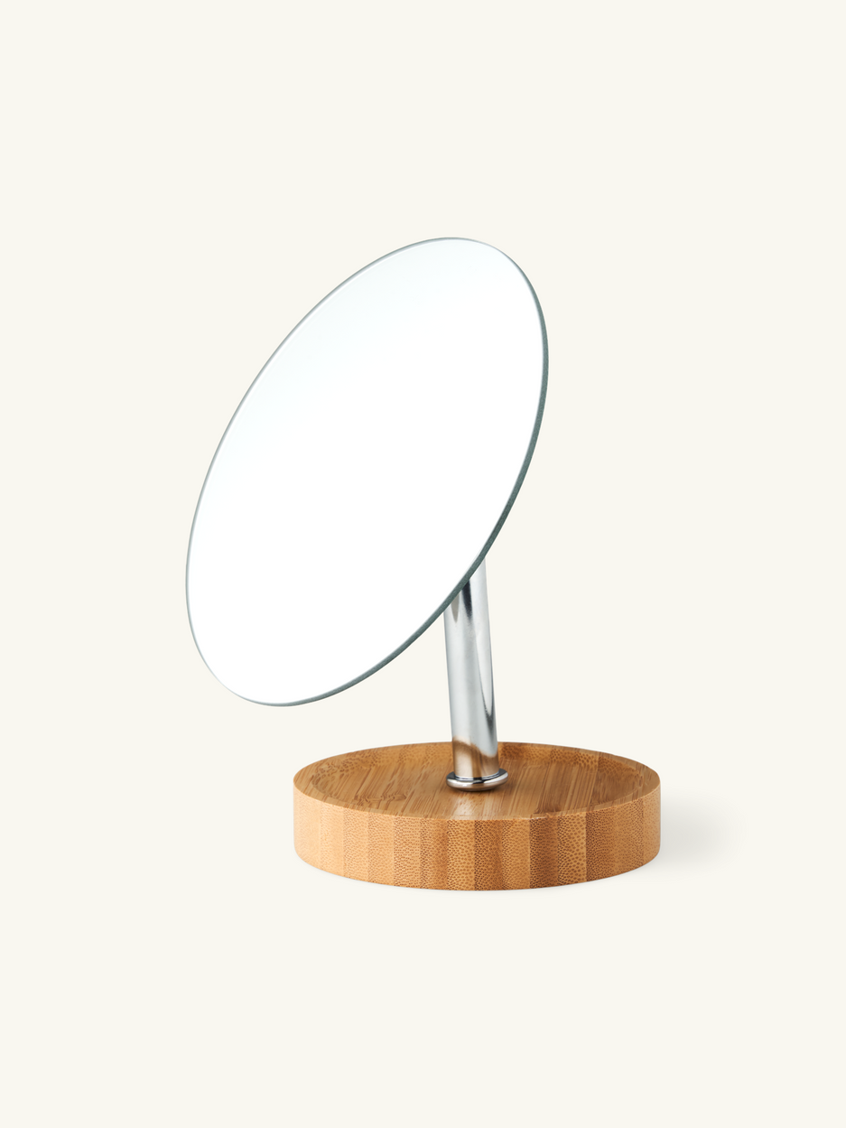 The sisters' mirror is made of 100% FSC®-certified bamboo and measures 15 x 24 cm.