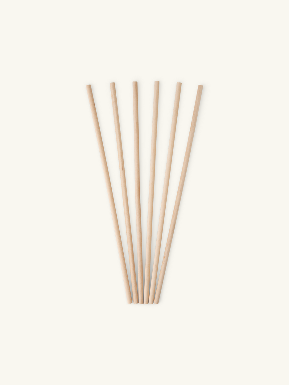 The sisters' wooden sticks are made of 100% FSC®-certified pinewood and measure 0.7 cm x 31 cm. A packet contains 6 sticks.