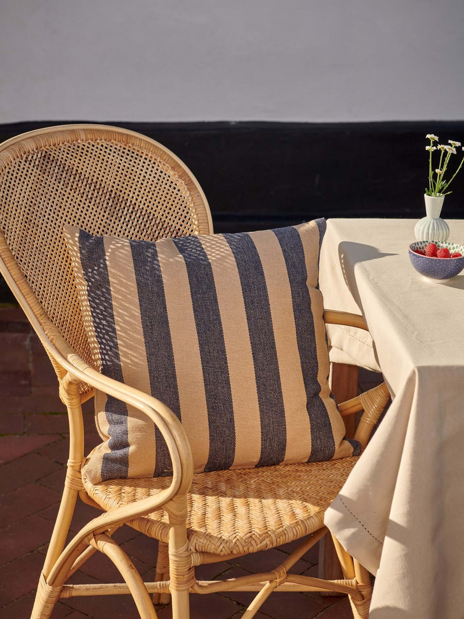 Púði systranna er gerður úr bómull og pólýester sem eru GRS-vottað* og STANDARD 100 by OEKO-TEX®-vottað**. Hann mælist 45 x 45 cm. "Skapaðu heimili sem gefur gefur munað og samhljóm hvern dag," segor Anna, meðan hún kemur þessum púða fyrir í hægindastól í stofu systranna. *10949CIT CITEVE **GCL-3349