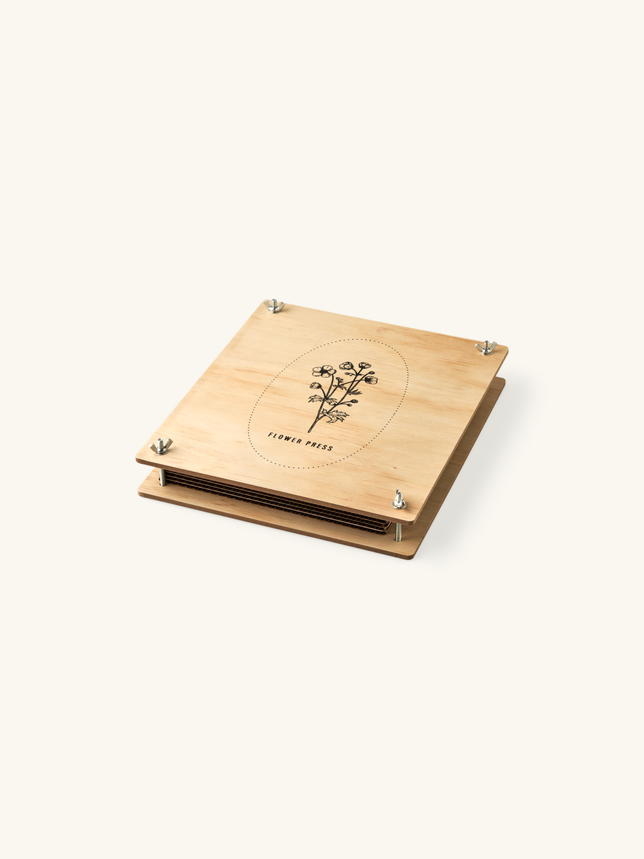 The sisters' flower press is made of 100% FSC®-certified MDF and pinewood and measures 30 x 25 x 4 cm.