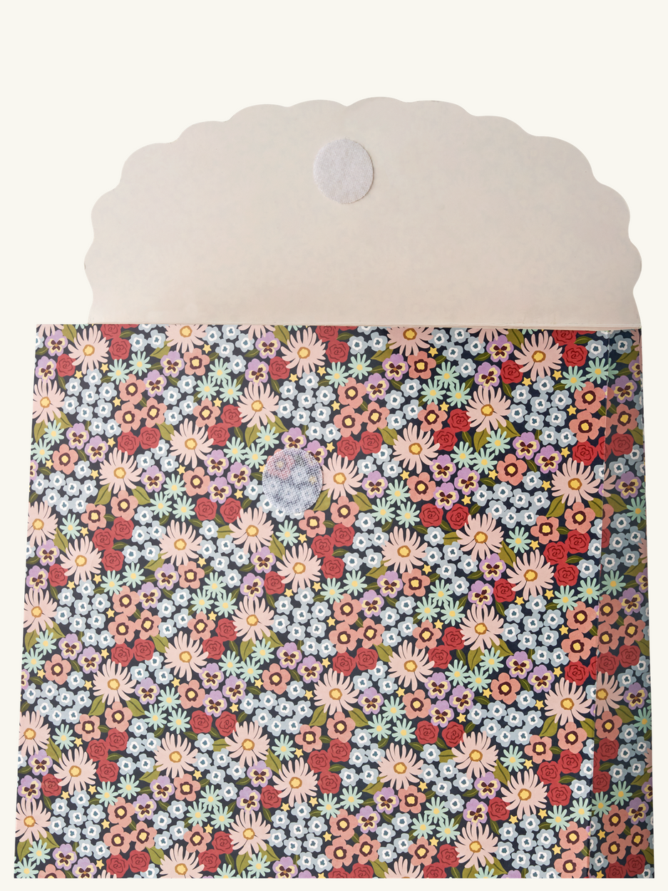 The sisters' envelope gift bag is made of FSC®-certified paper and measures 32 x 24 x 10.5 cm. The gift bag features a hook-and-loop fastener and can thus create joy again and again.
