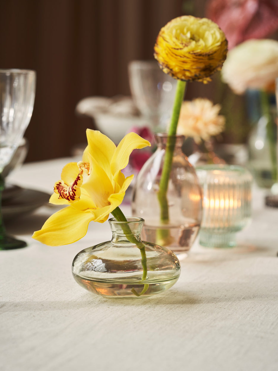 The sisters' vase is made of glass and is a wonderfully decorative item with or without flowers.