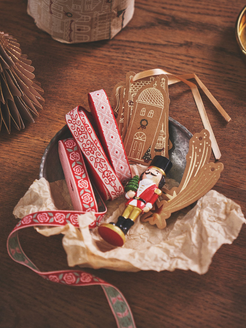 The sisters' ribbon is made of STANDARD 100 by OEKO-TEX®-certified* polyester and measures 16 mm x 4 m. It has a lovely woven design.