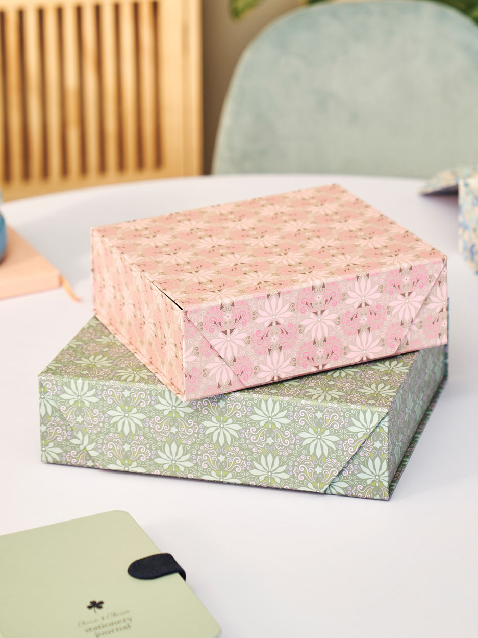 The sisters' foldable box is made of FSC®-certified paper and measures 27 x 22 x 7 cm.
