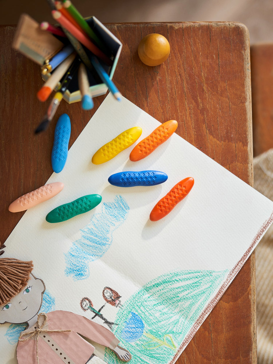 Whenever Anna produces the sister's crayon box, the nieces are delighted and can spend a whole afternoon creating drawing after drawing in beautiful colours. Together, they then attach the artworks to the sisters' walls and cabinets and the whole family pretends they are visiting a fancy gallery.
