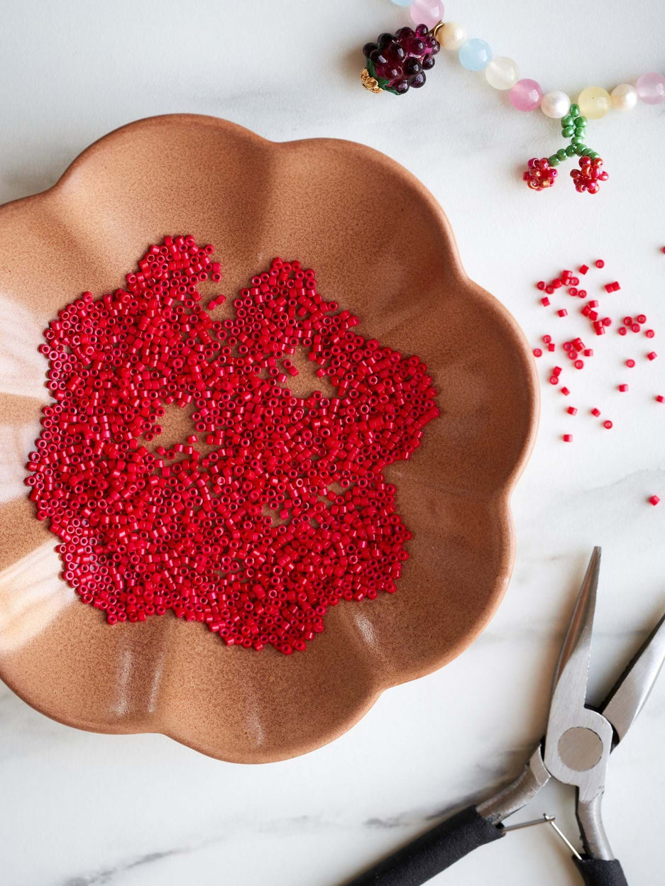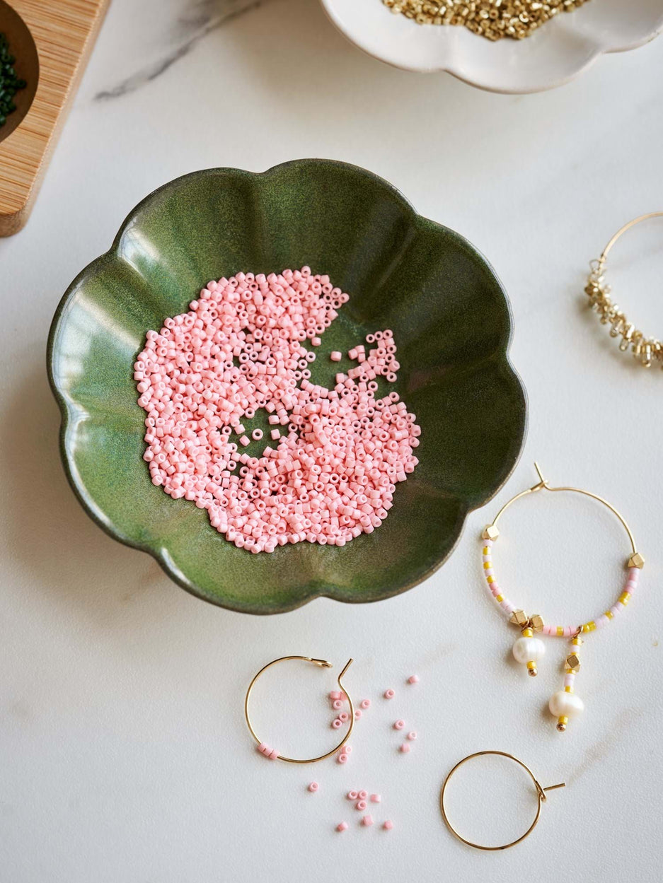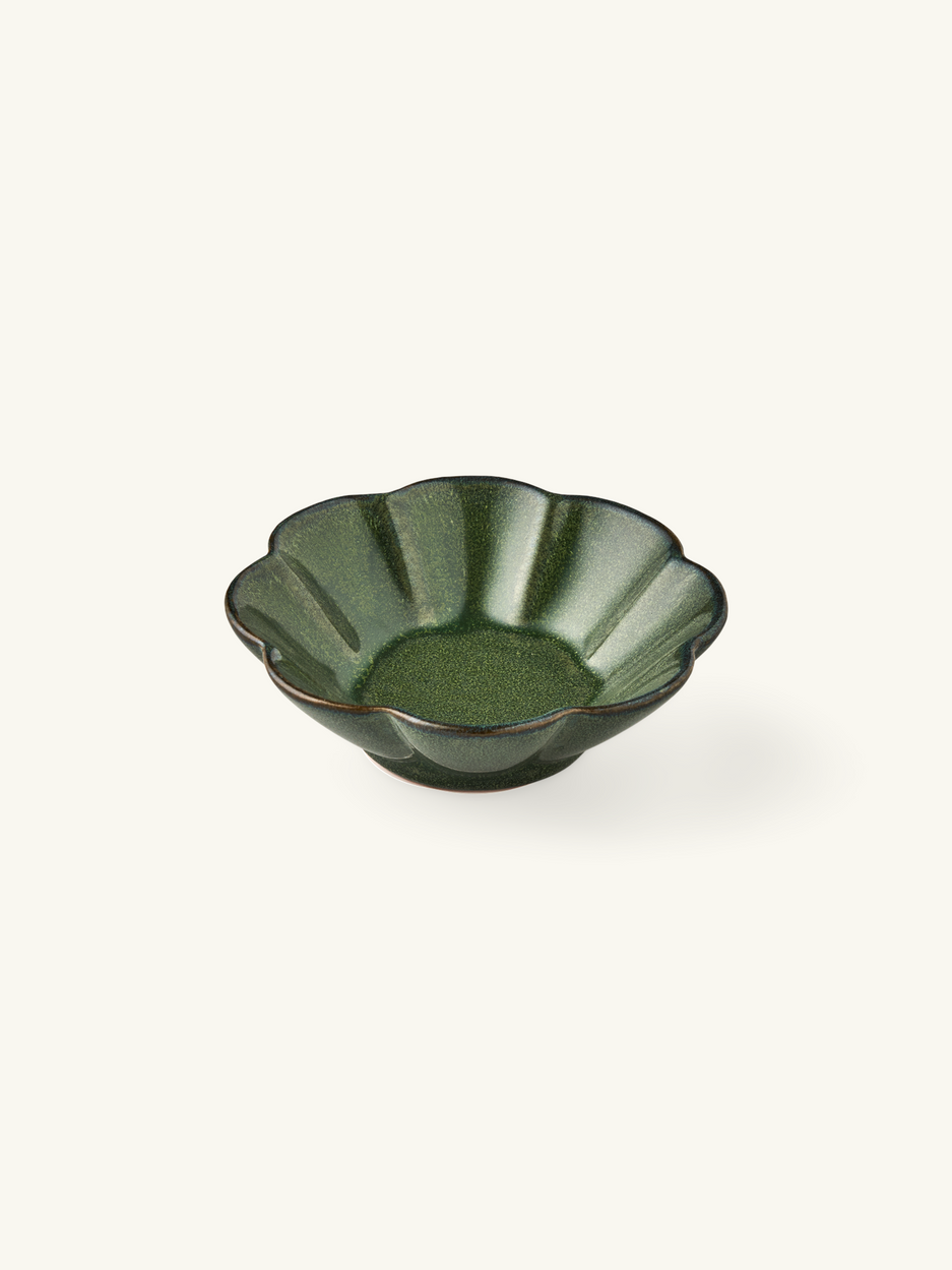 The sisters' decorative bowl is made of stoneware and measures 9 cm in diametre and 2.8 cm in height.