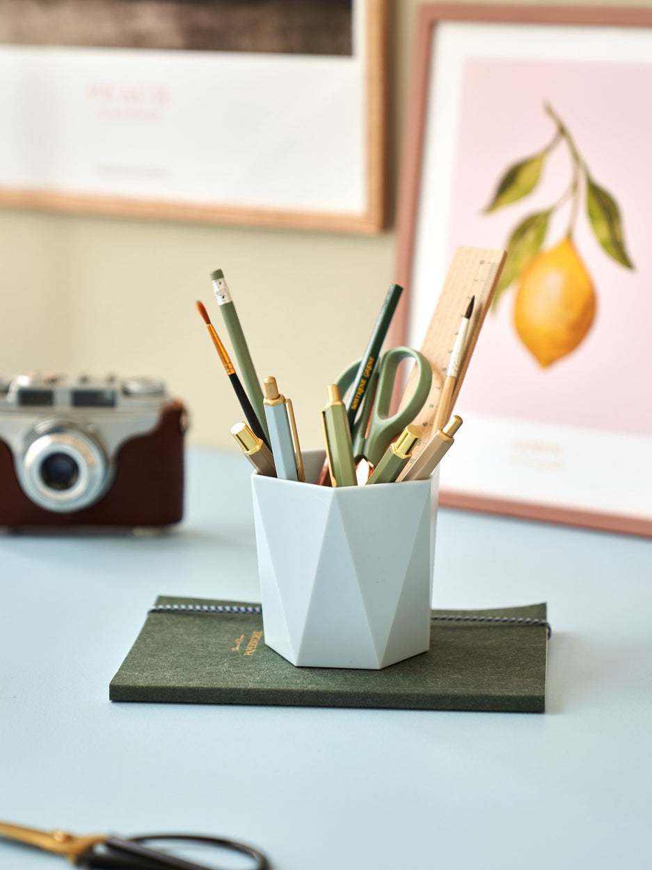 "Furnish your desk with aesthetic and practical office supplies," the sisters suggest. "A home for your pens."