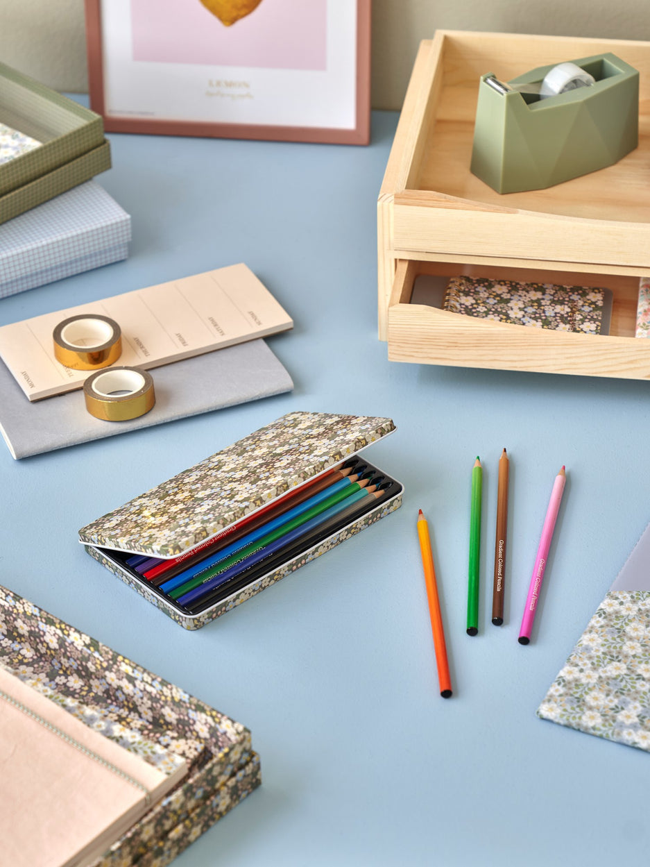 The sisters' colouring pencils are made of FSC®-certified wood and come in a metal box. Each packet includes 12 colouring pencils.