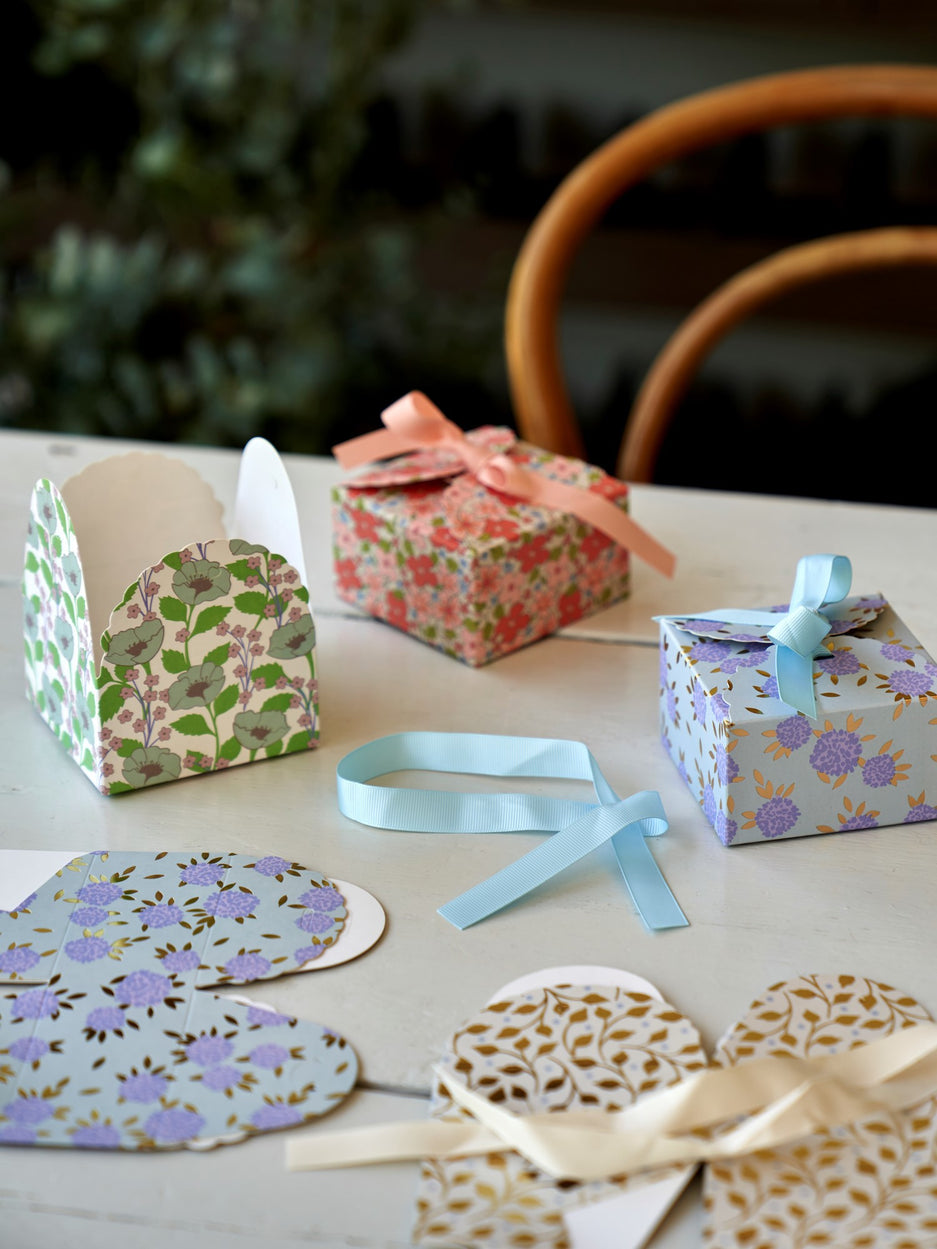 The sisters' gift boxes are made of FSC®-certified paper and measure 17.5 x 23 x 1.5 cm. A packet contains 4 boxes.