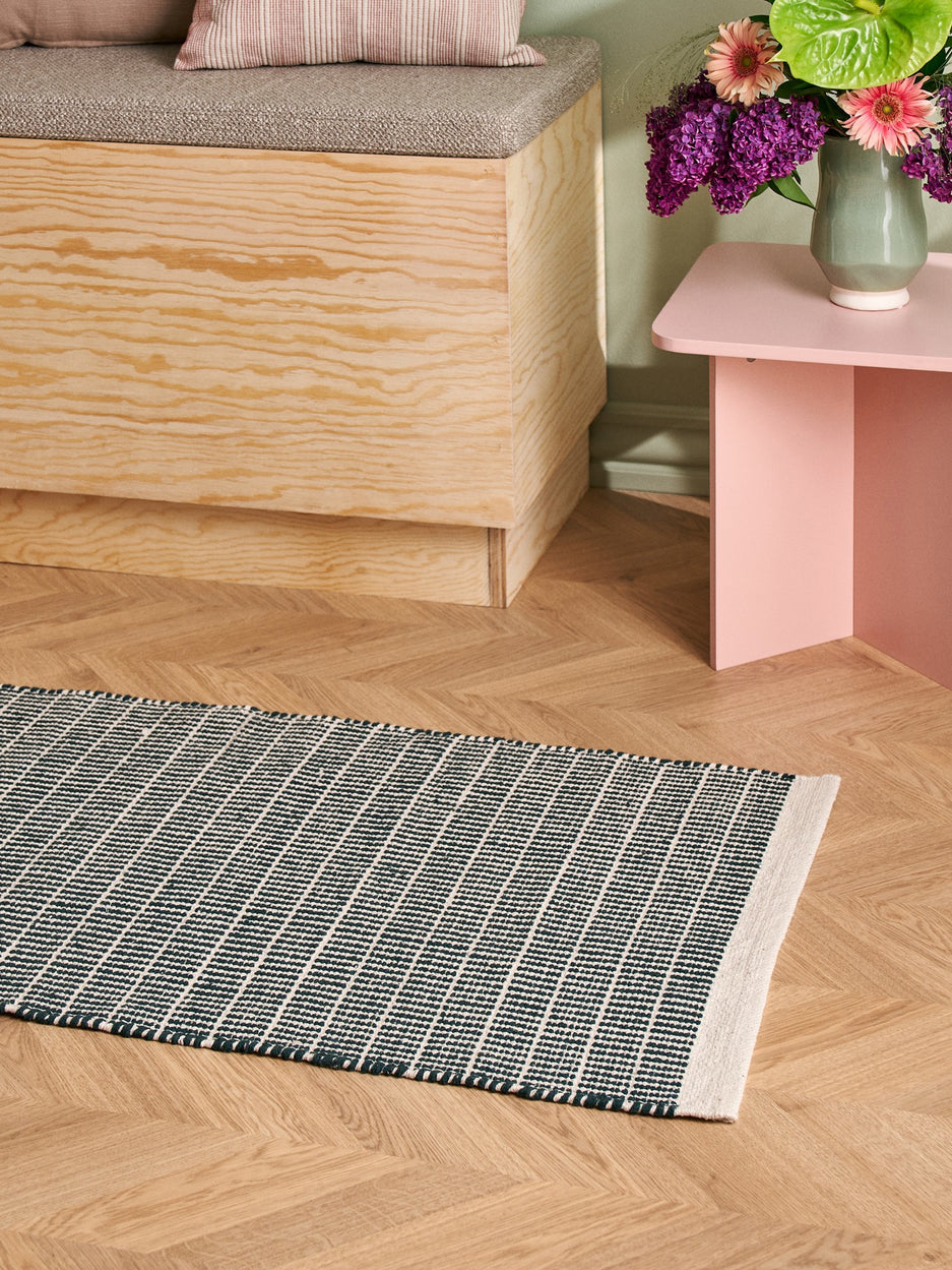 The sisters' rug is made of STANDARD 100 by OEKO-TEX®-certified* cotton, polyester, and viscose and measures 60 x 120 cm.