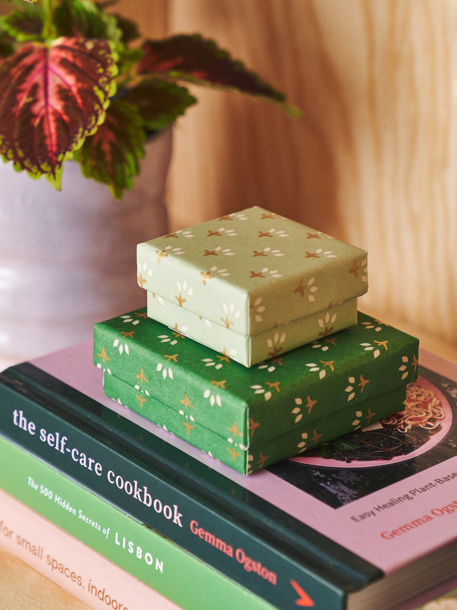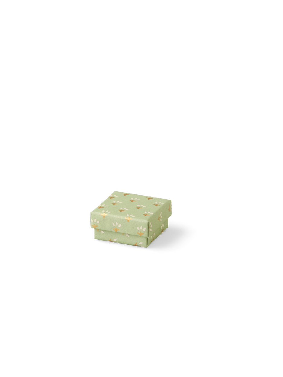 The sisters' box is made of paper and cotton paper and measures 6 x 6 x 3 cm.
