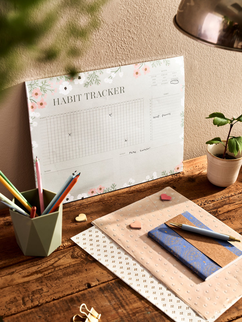 The sisters' habit tracker is a useful little tool to keep track of your habits. A page has a month index, a list of habits to fill in, as well as room for notes and goals. The tracker is made of FSC®-certified paper and has 24 sheets of 100 gsm.