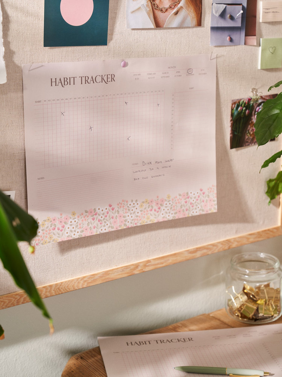 The sisters' habit tracker is FSC®-certified and has 24 sheets with room to track habits, as well as write notes and goals for each month.